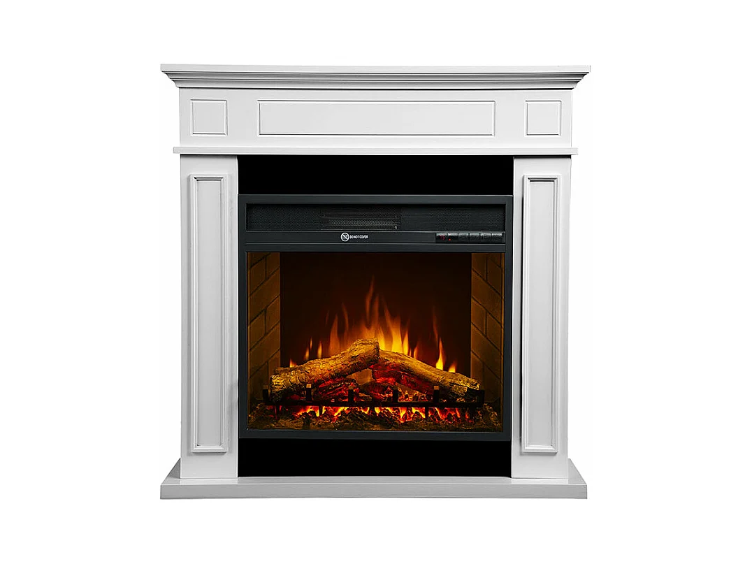 Camino elettrico da terra in legno Bianco L 89,5 x H90,5 x P28