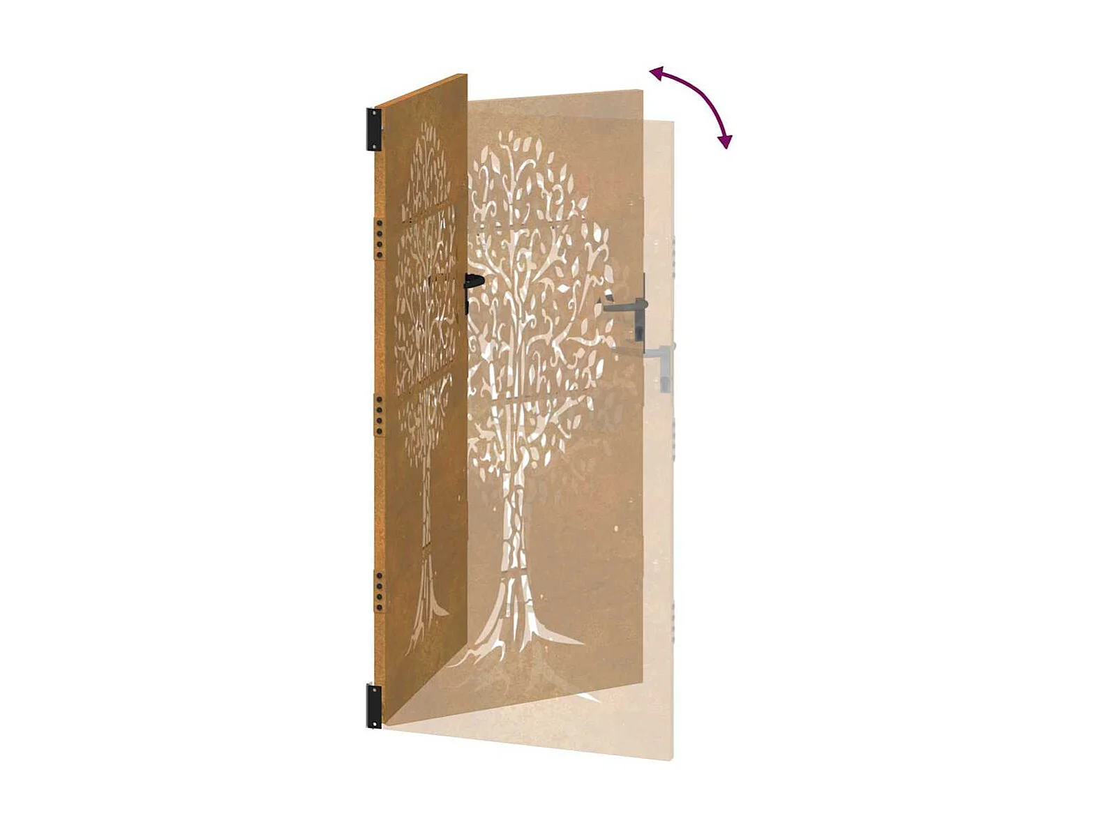 Cancello da giardino 85x200 cm in acciaio corten design albero