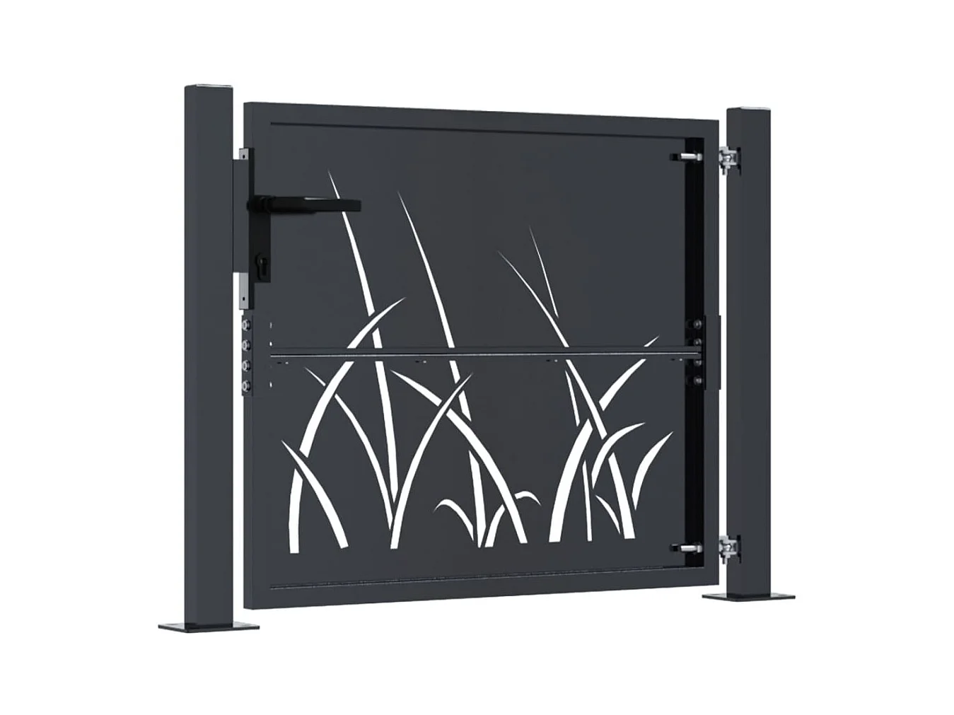Cancello da giardino antracite 105x80 cm design erba in acciaio