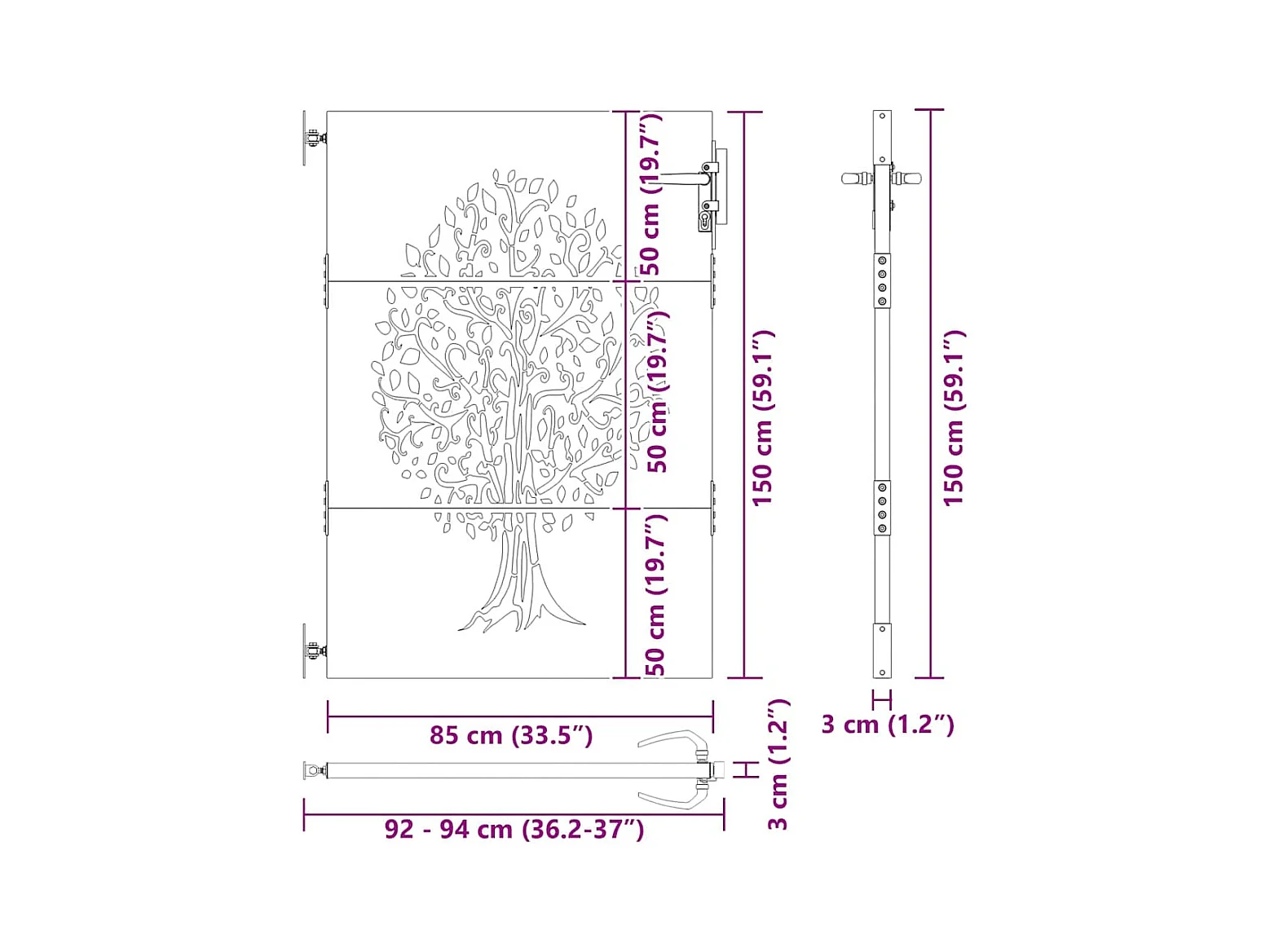 Cancello da giardino, Cancello da giardino 85x75 cm Design ad albero in acciaio Corten