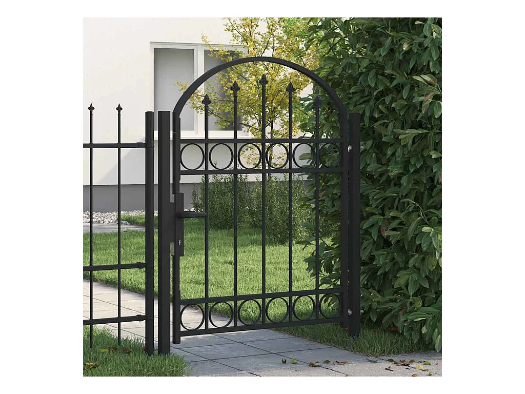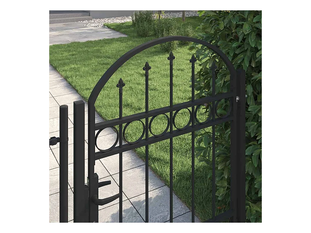 Cancello per recinzione con parte superiore arcuata in acciaio 104 x 125 cm Nero