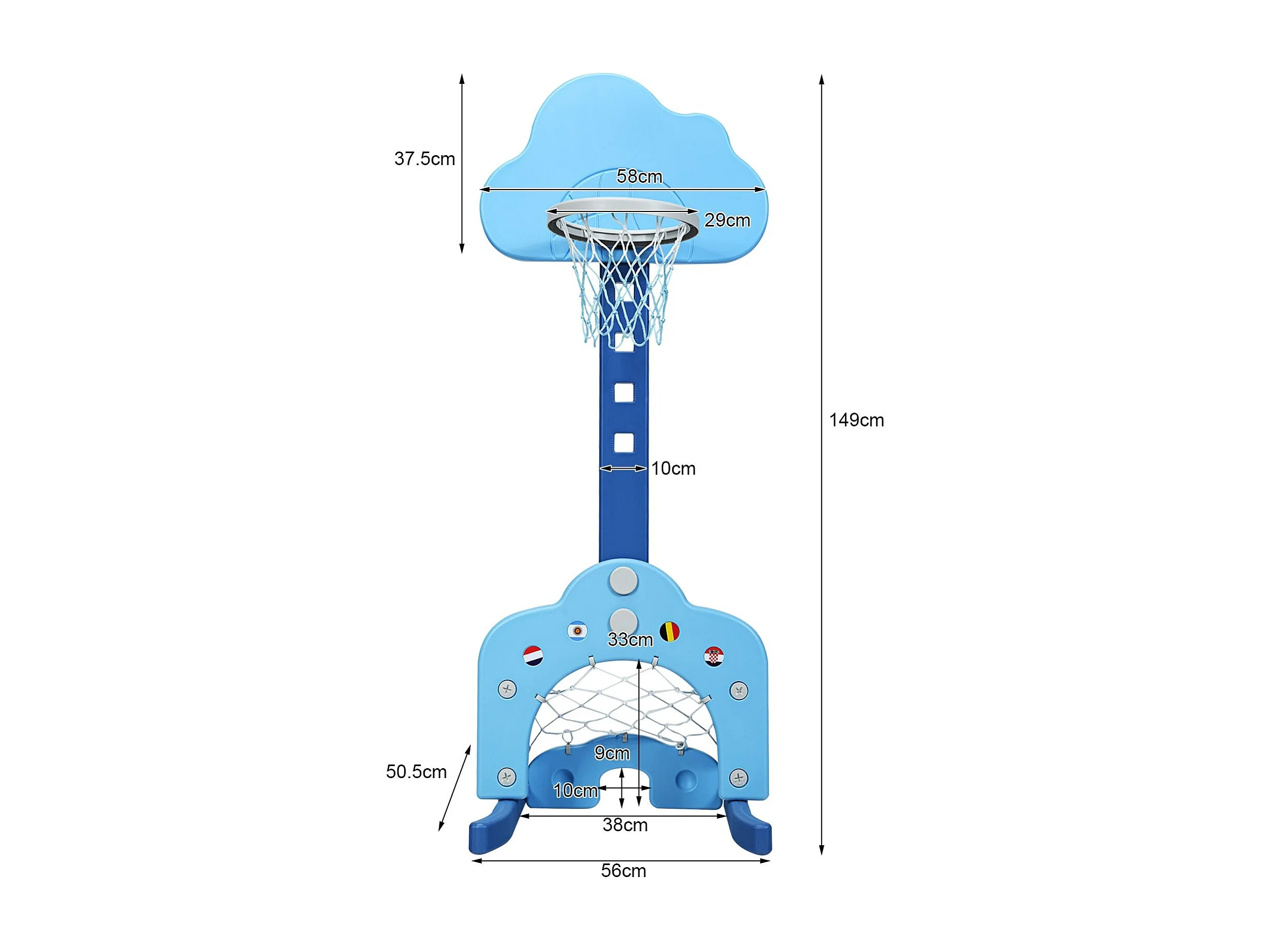 Canestro da basket per bambini regolabile con basket calcio golf, Centro di attività sportiva per interno ed esterno Blu