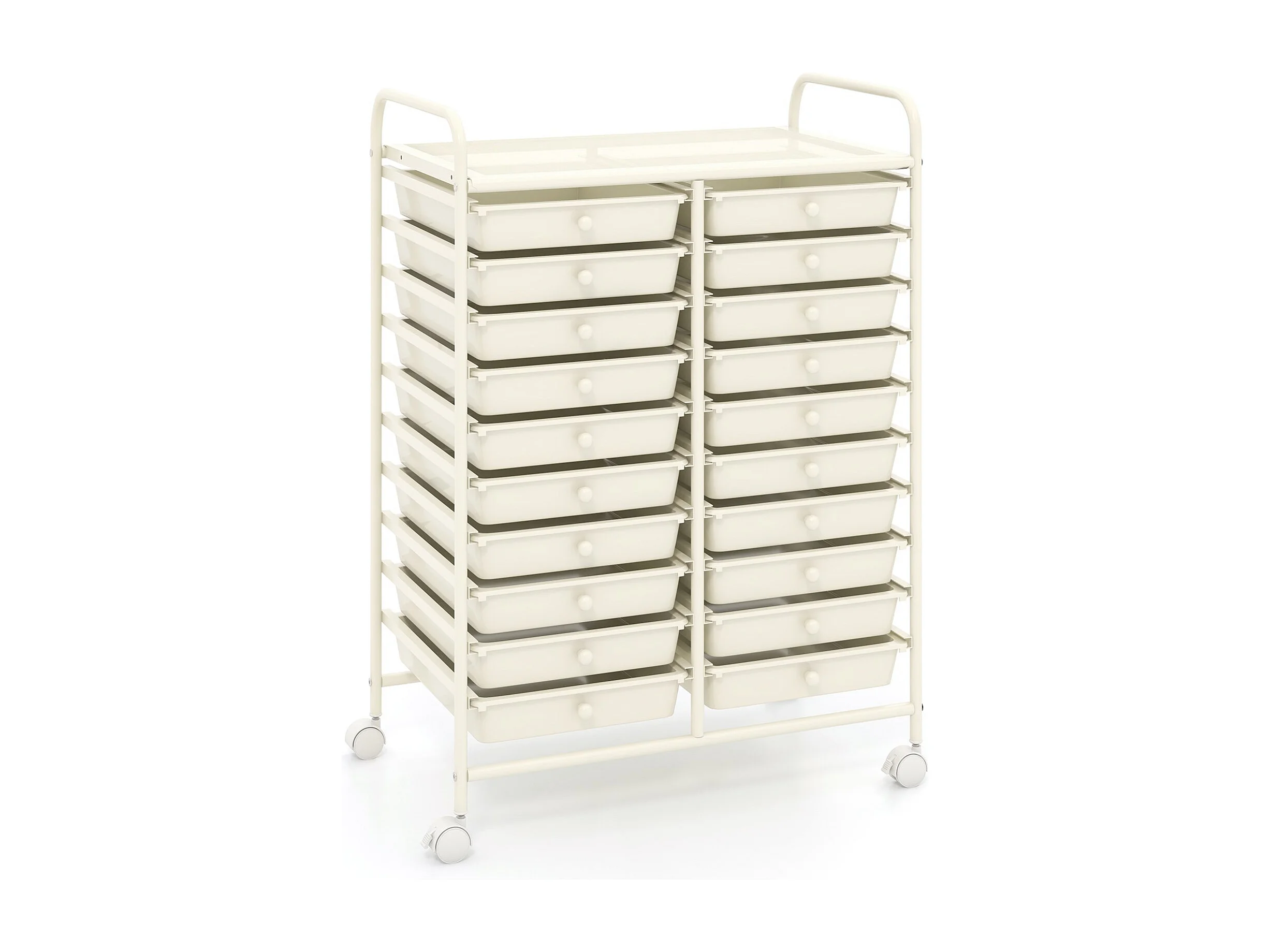 Carrello cassettiera multiuso e leggero con 20 cassetti, Contenitore con ruote per ufficio e casa Bianco