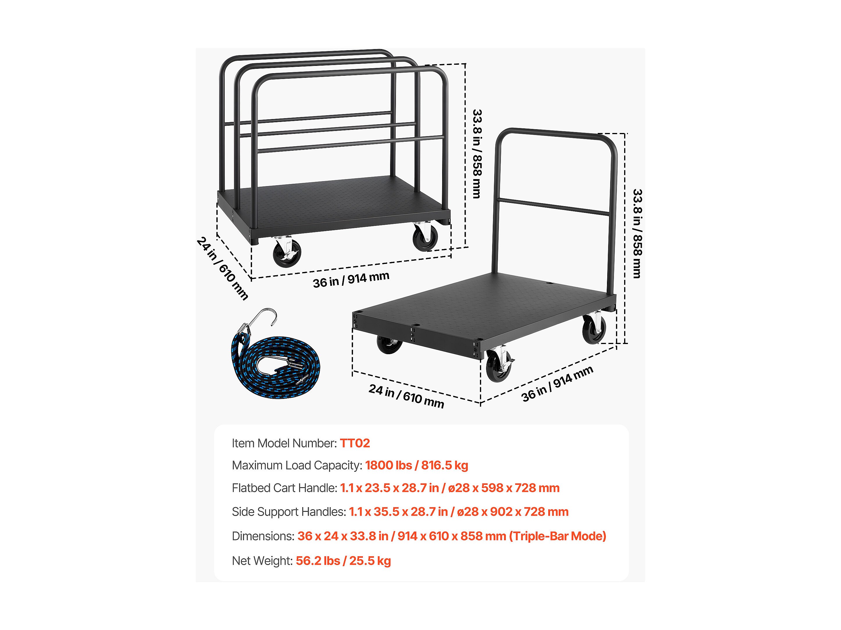 Carrello Porta-Lastre SucceBuy di Gesso, Carico 816,5 kg, Carrello Porta-Pannelli di Cartongesso a Piattaforma 91.4 x 61 cm, per Trasporto, Nero