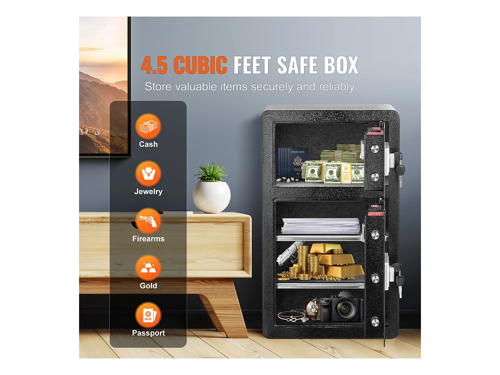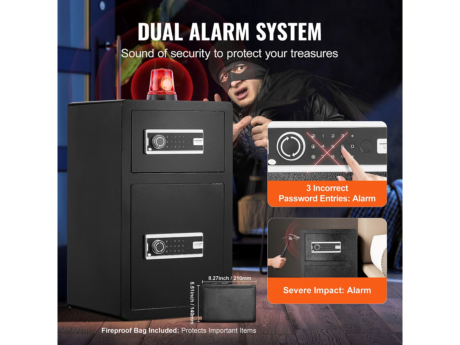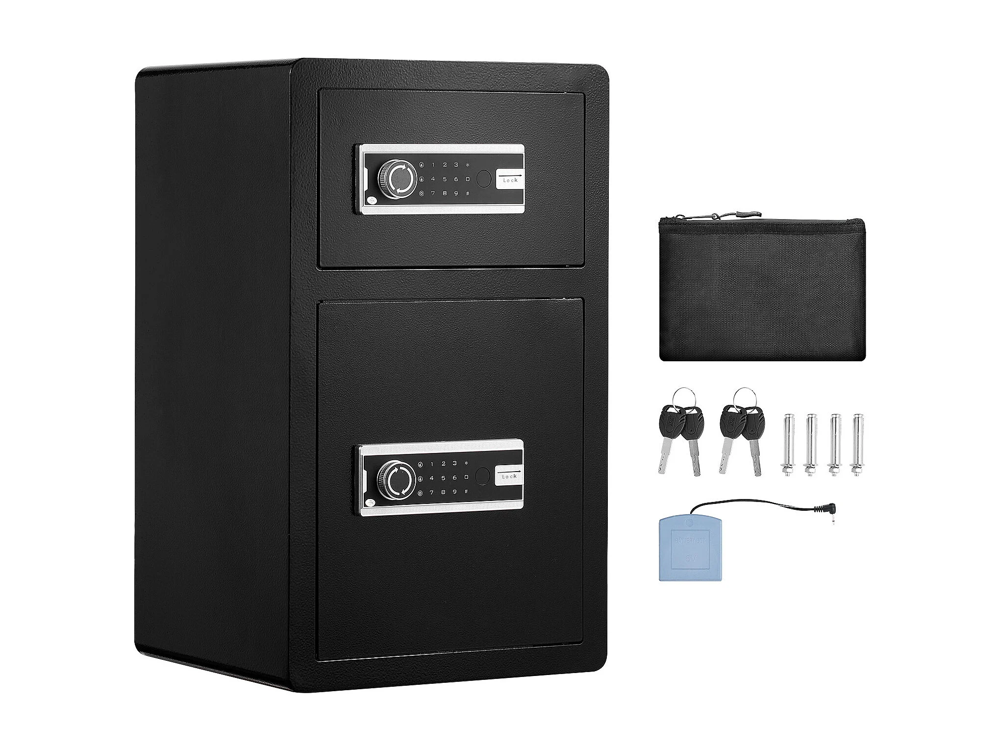 Cassaforte, SucceBuy 127 300 cm³, Nera, con Doppia Porta, Serratura a Chiave e Password Ignifuga