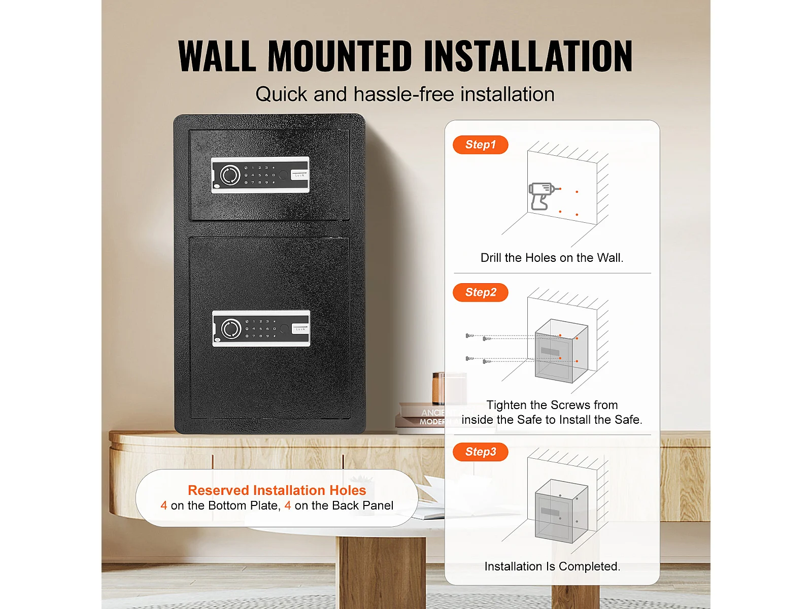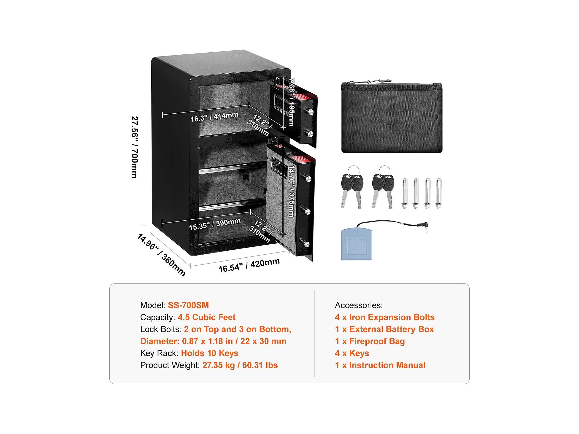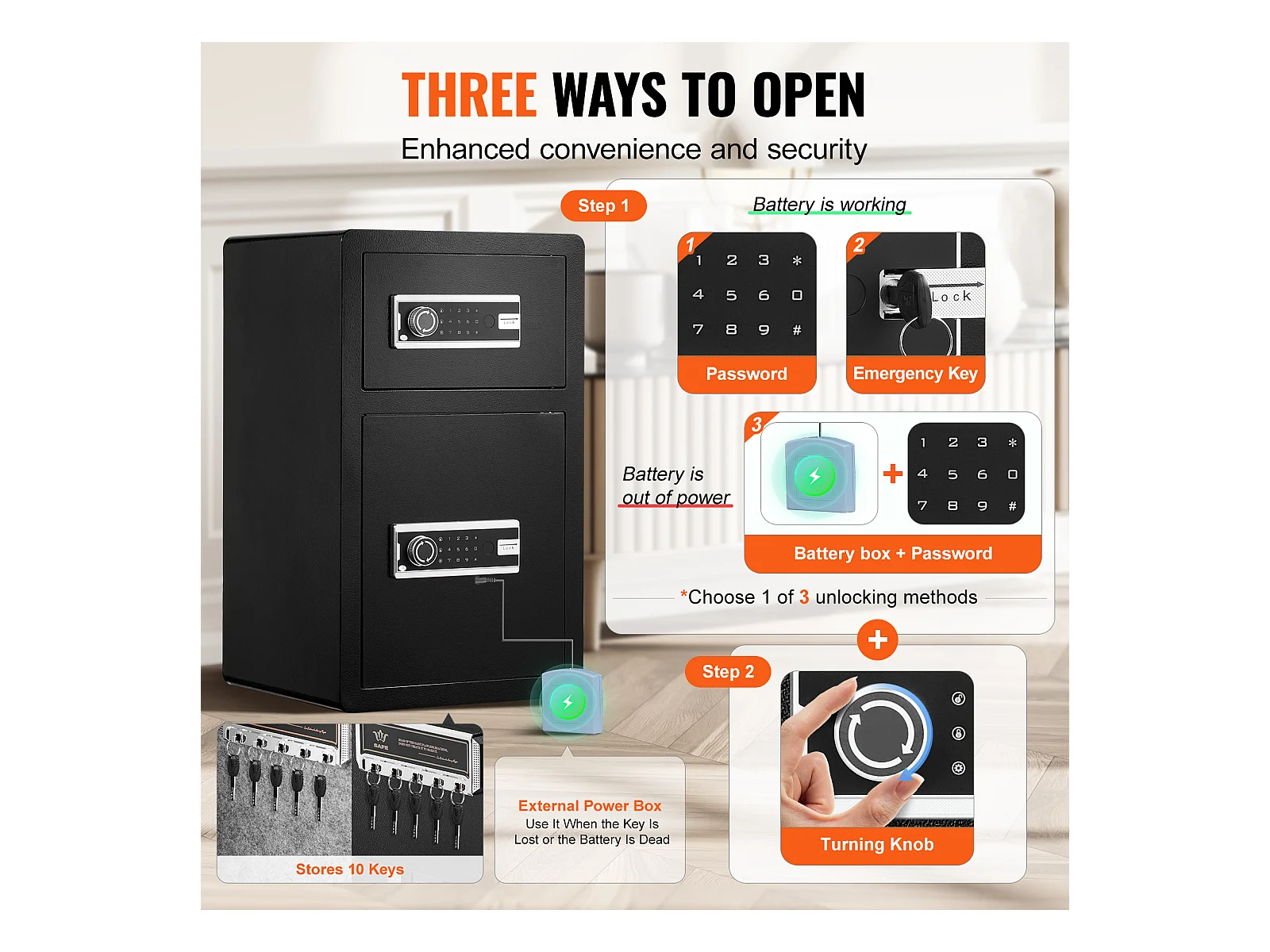 Cassaforte, SucceBuy 127 300 cm³, Nera, con Doppia Porta, Serratura a Chiave e Password Ignifuga
