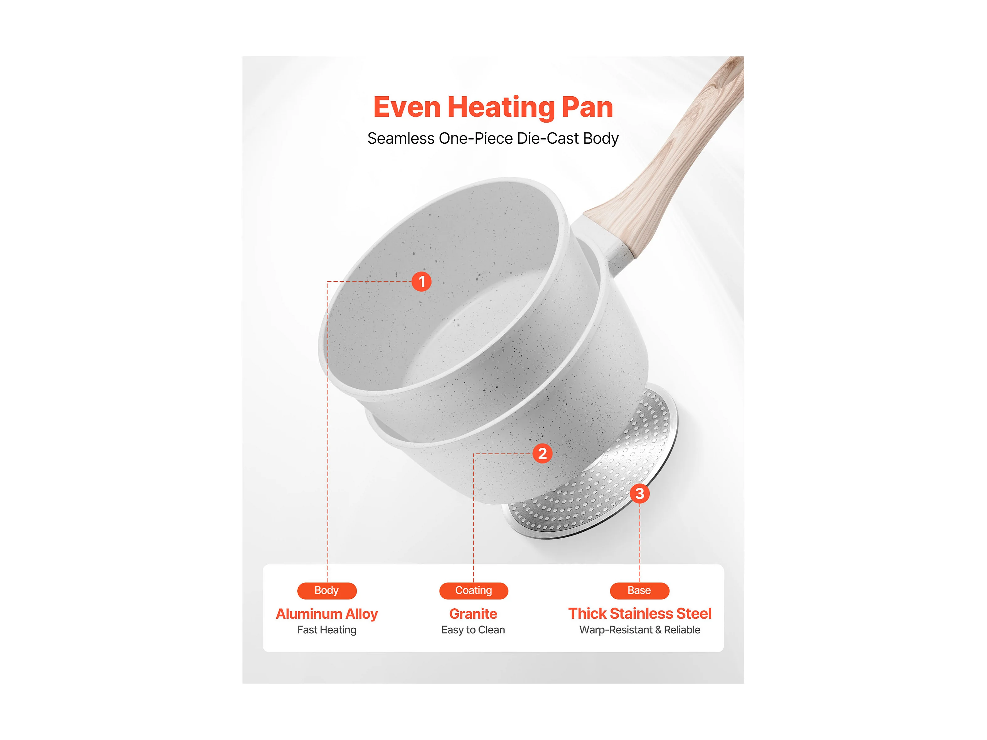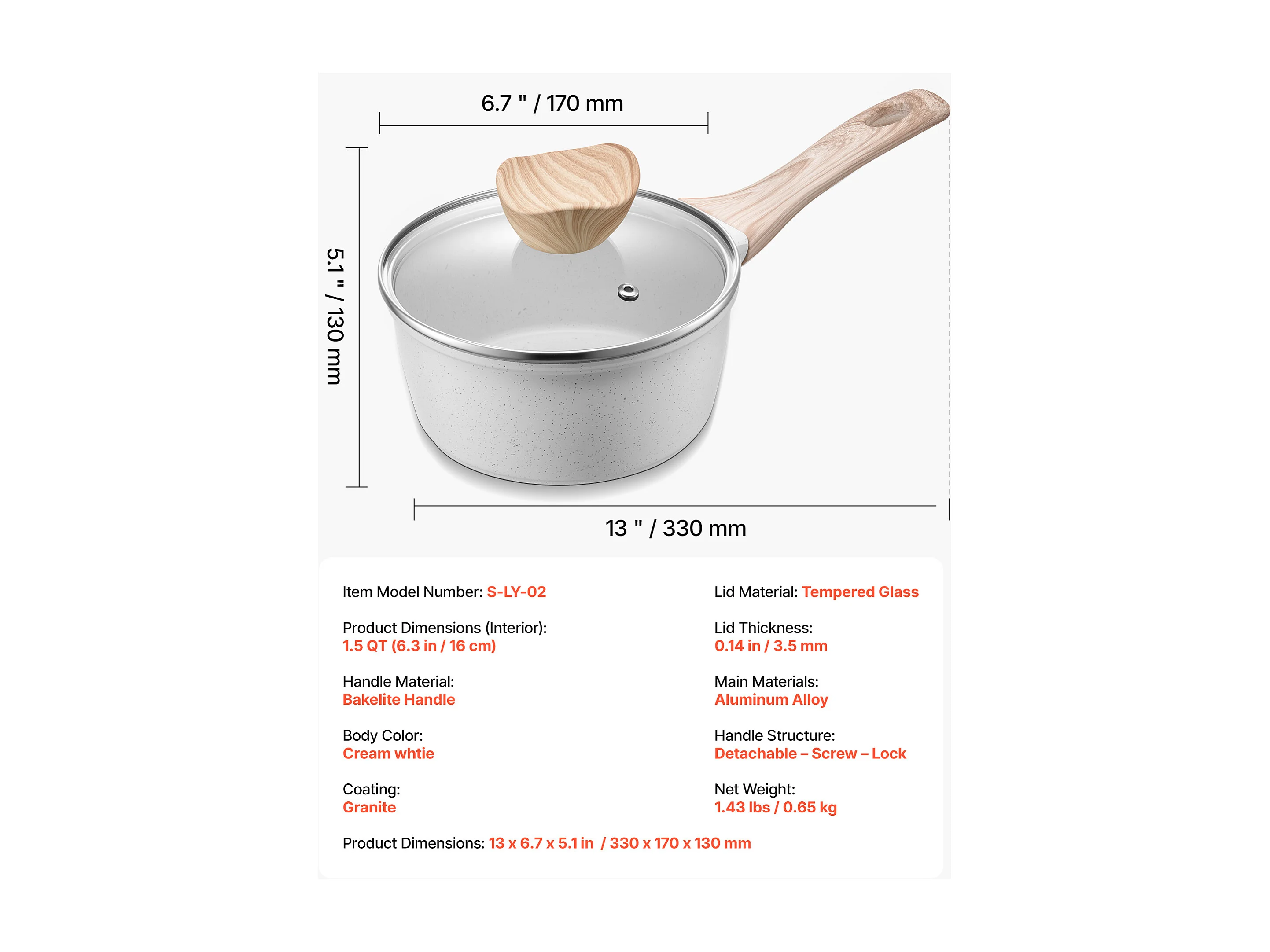 Casseruola SucceBuy da 1,4 L, Pentolino con Rivestimento Antiaderente, Coperchio in Vetro Temperato E Manico Removibile, Pentola Compatibile con Cucina
