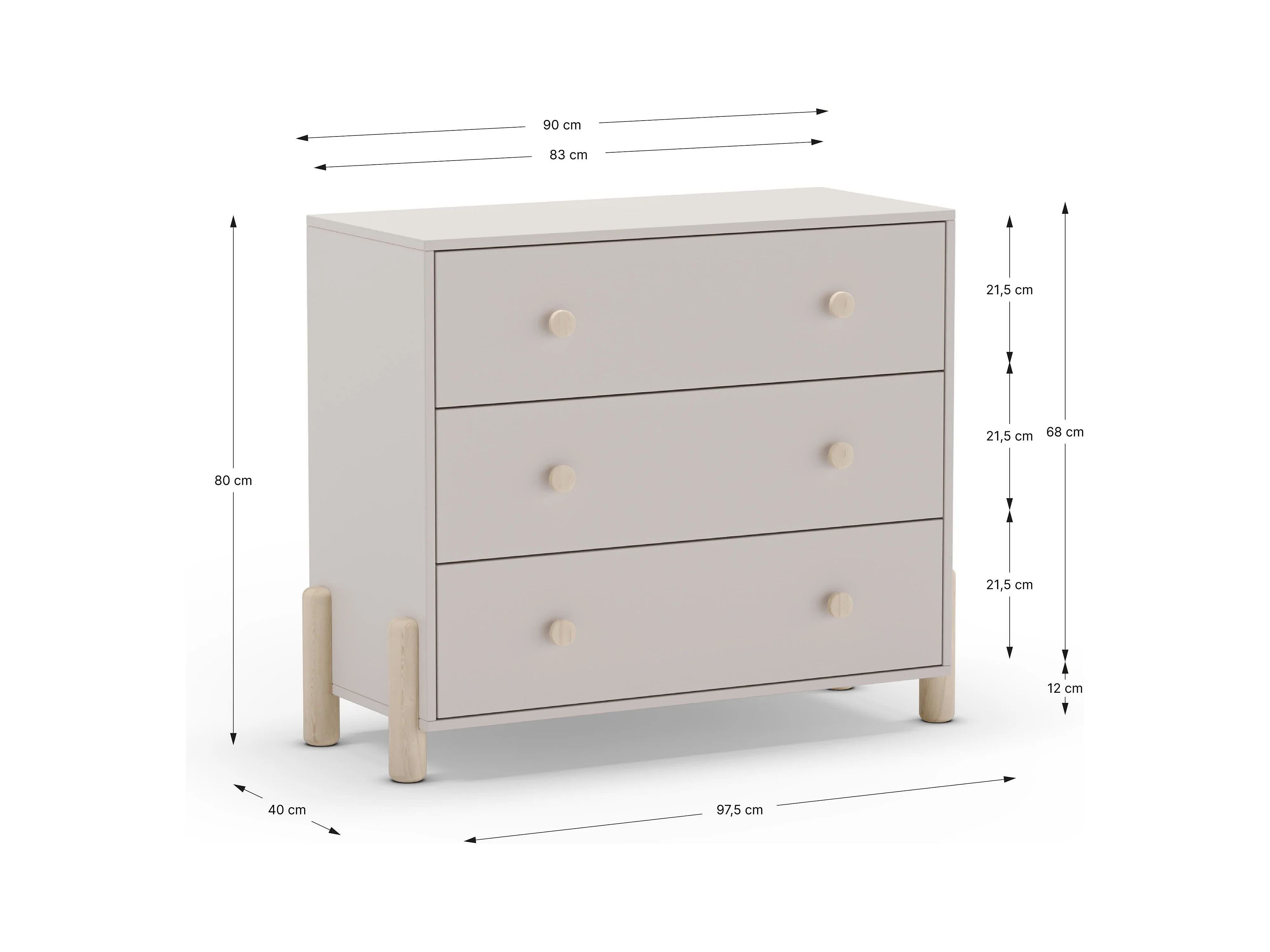 Cassettiera per bambini in legno di rovere a 3 cassetti Côme