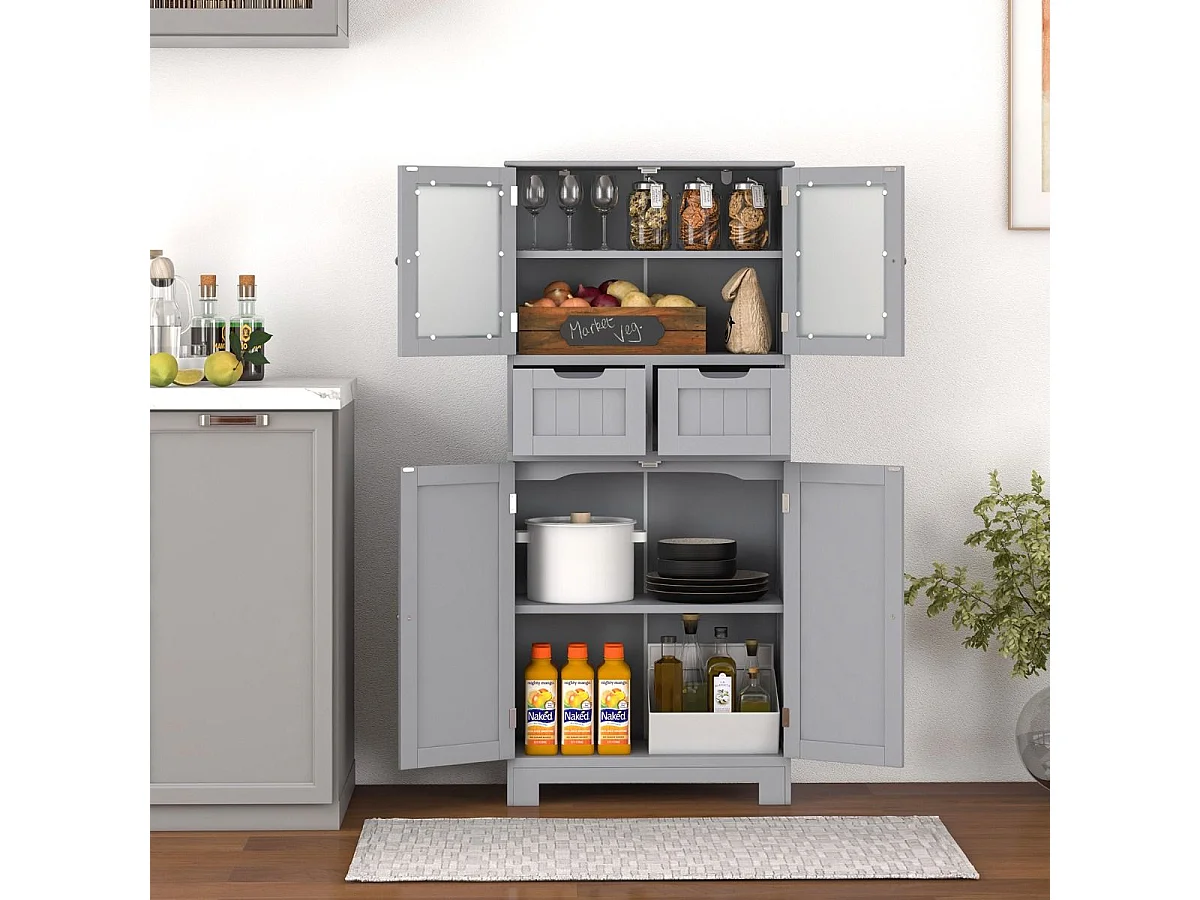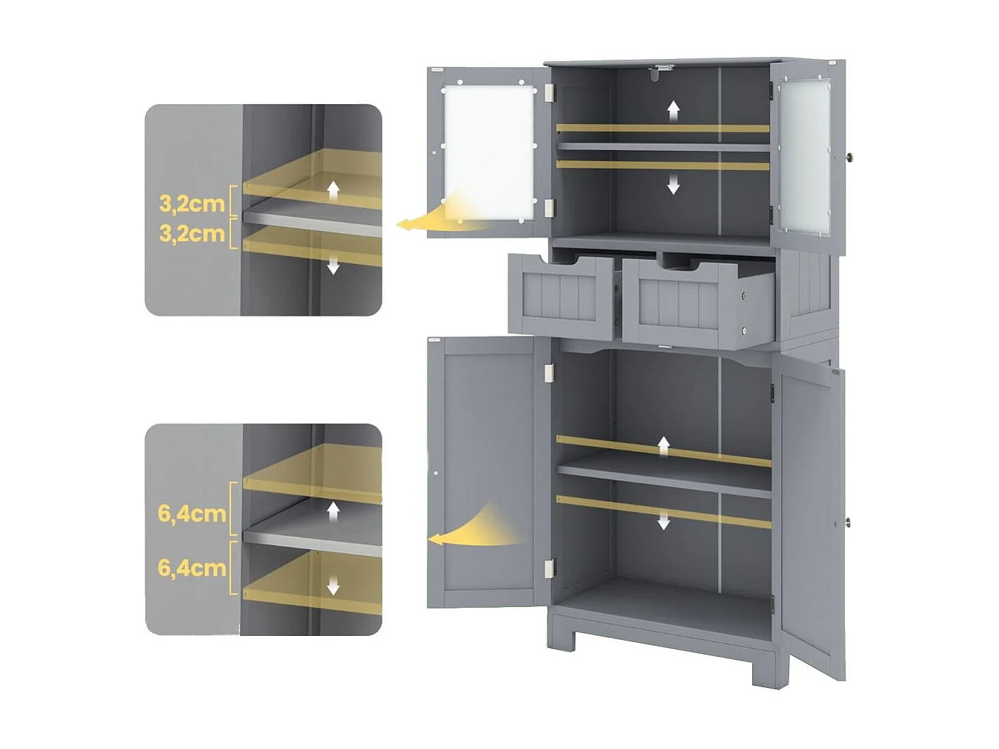 Cassettiera buffet da cucina in legno con vetro, grigio - 60 x 30 x 128 cm