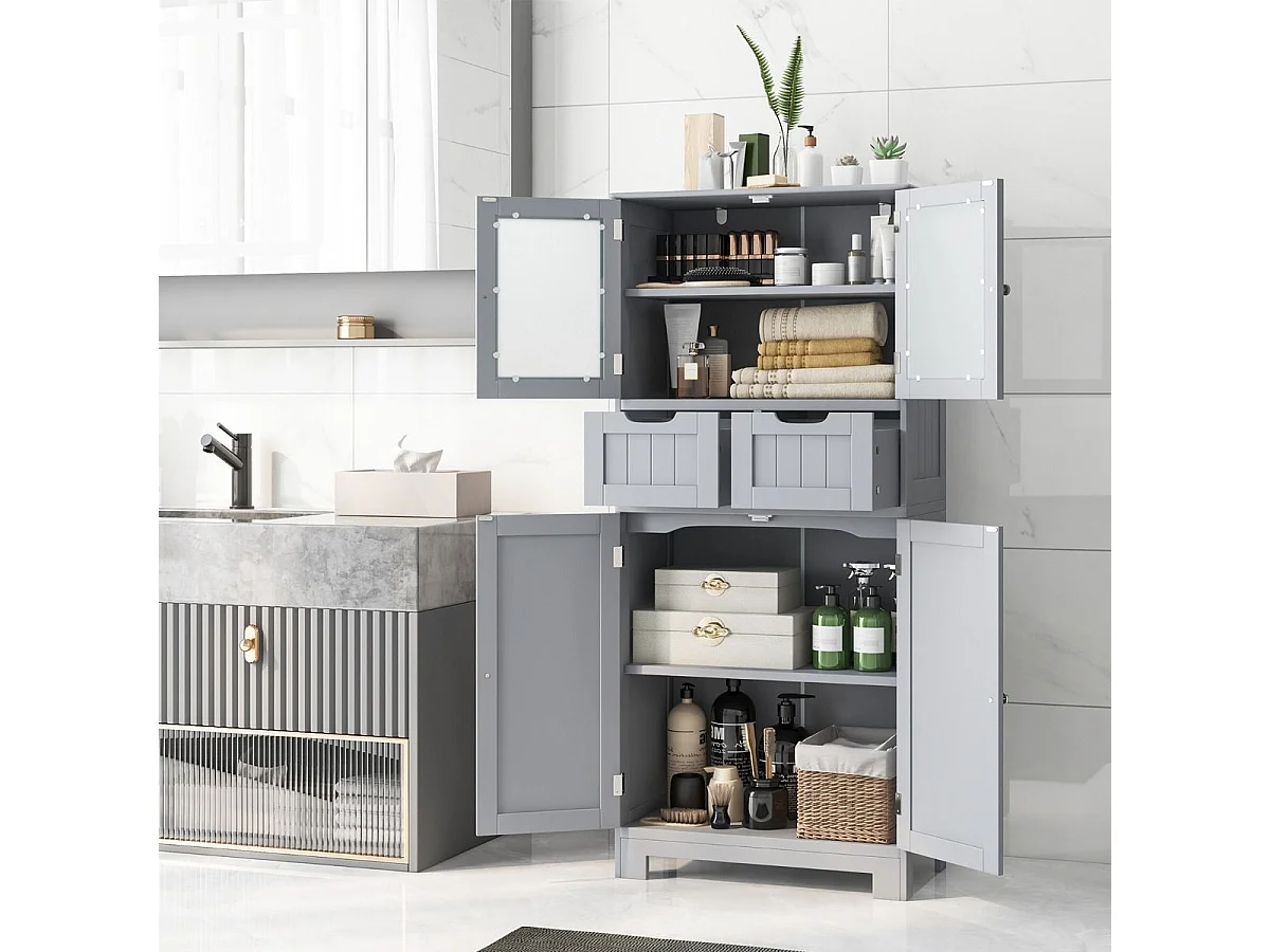 Mobile bagno angolare laccato - 61,5 x 34,5 x 90 cm - con 2 ante + 3 ripiani - MDF - grigio