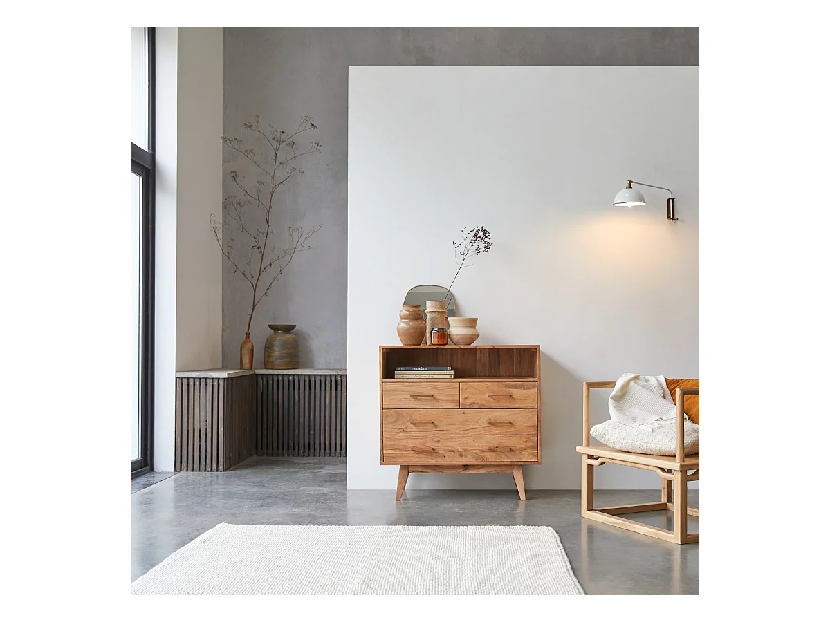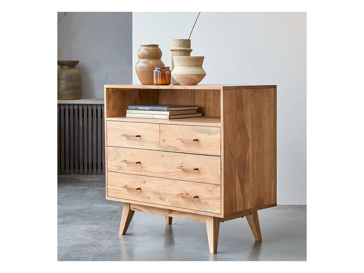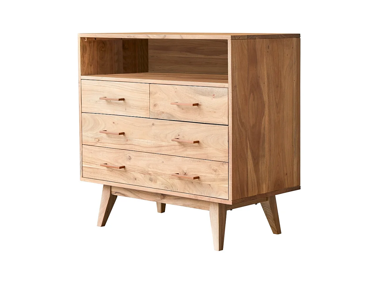 cassettiera comò mobile camera legno massello acacia 4 cassetti stanza letto