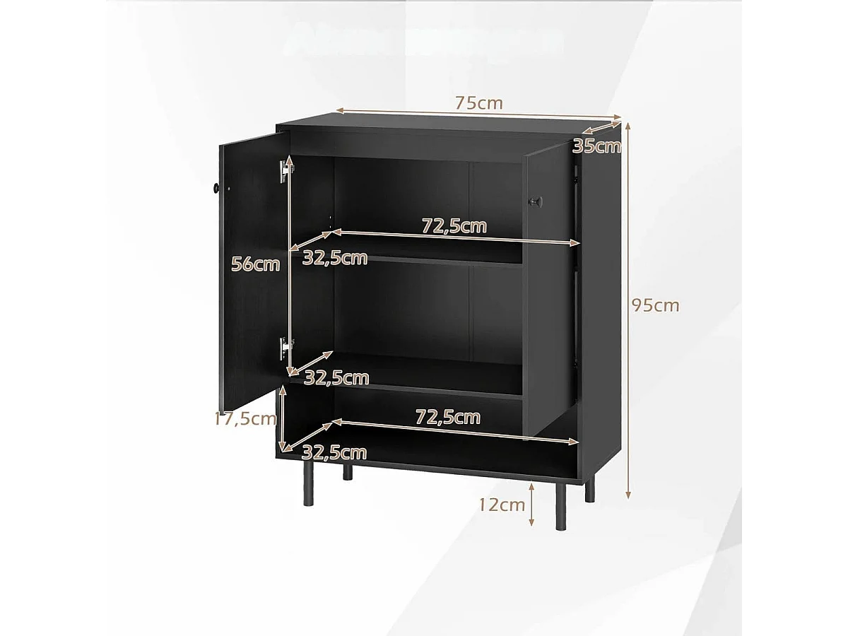 Cassettiera con ripiani regolabili e 2 ante Armadio buffet Armadio da cucina Armadio portaoggetti Nero