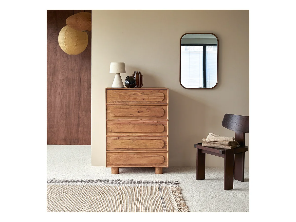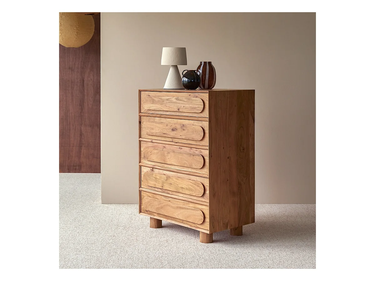 Cassettiera in legno di acacia 5 cassetti Olga