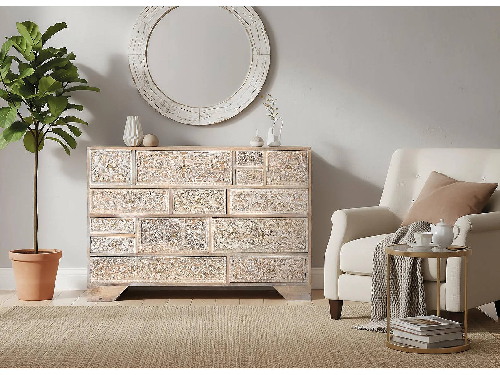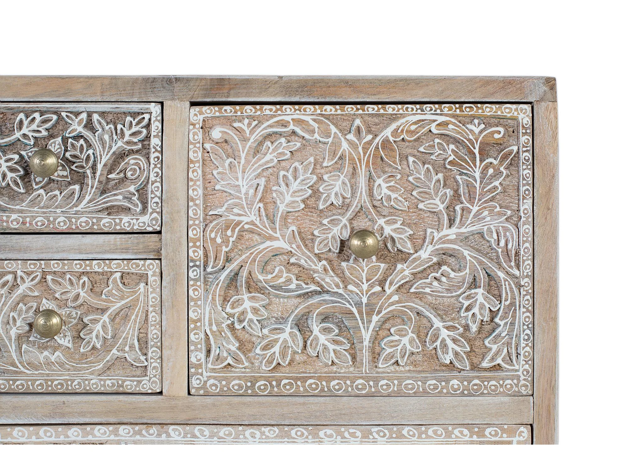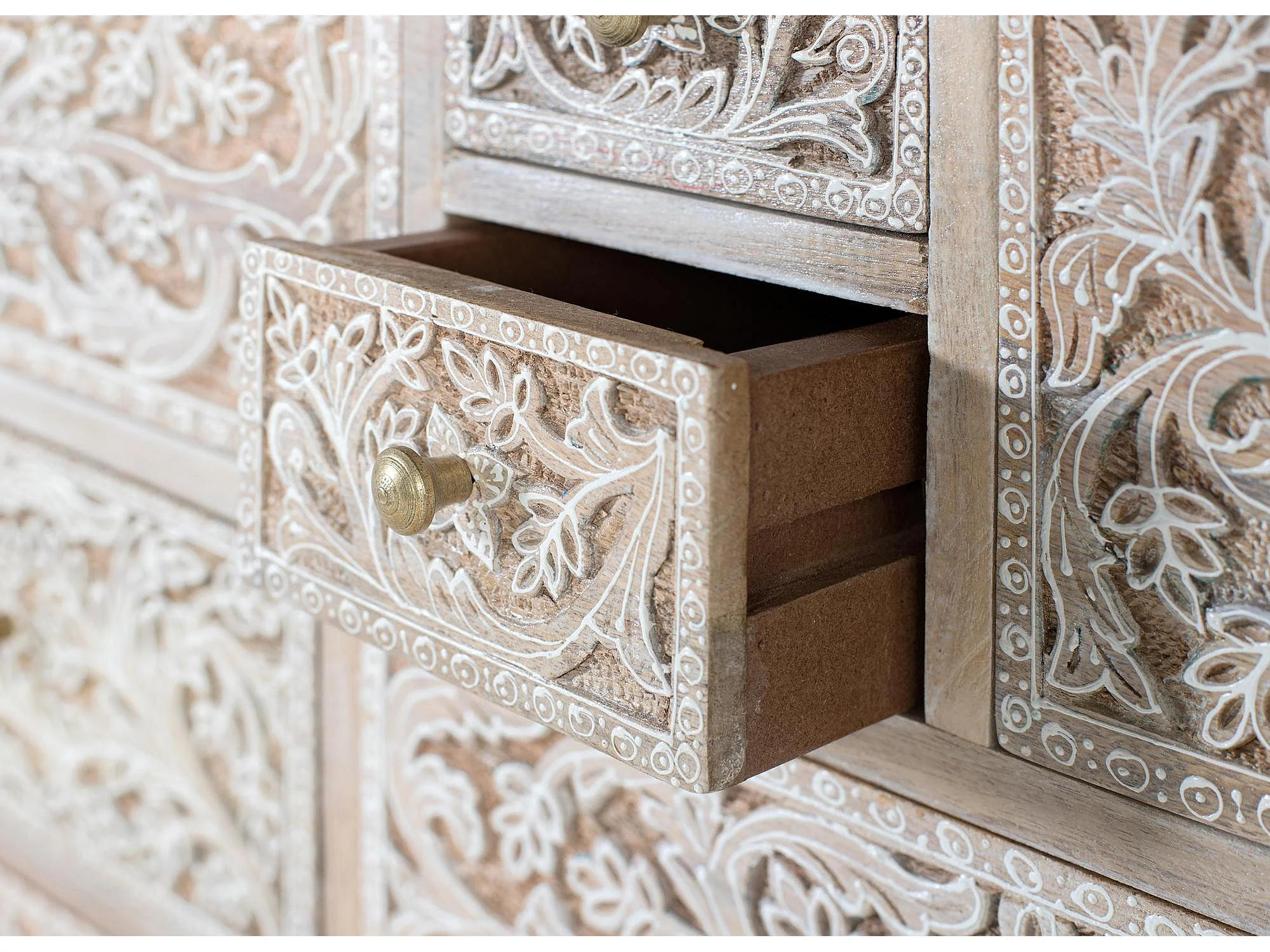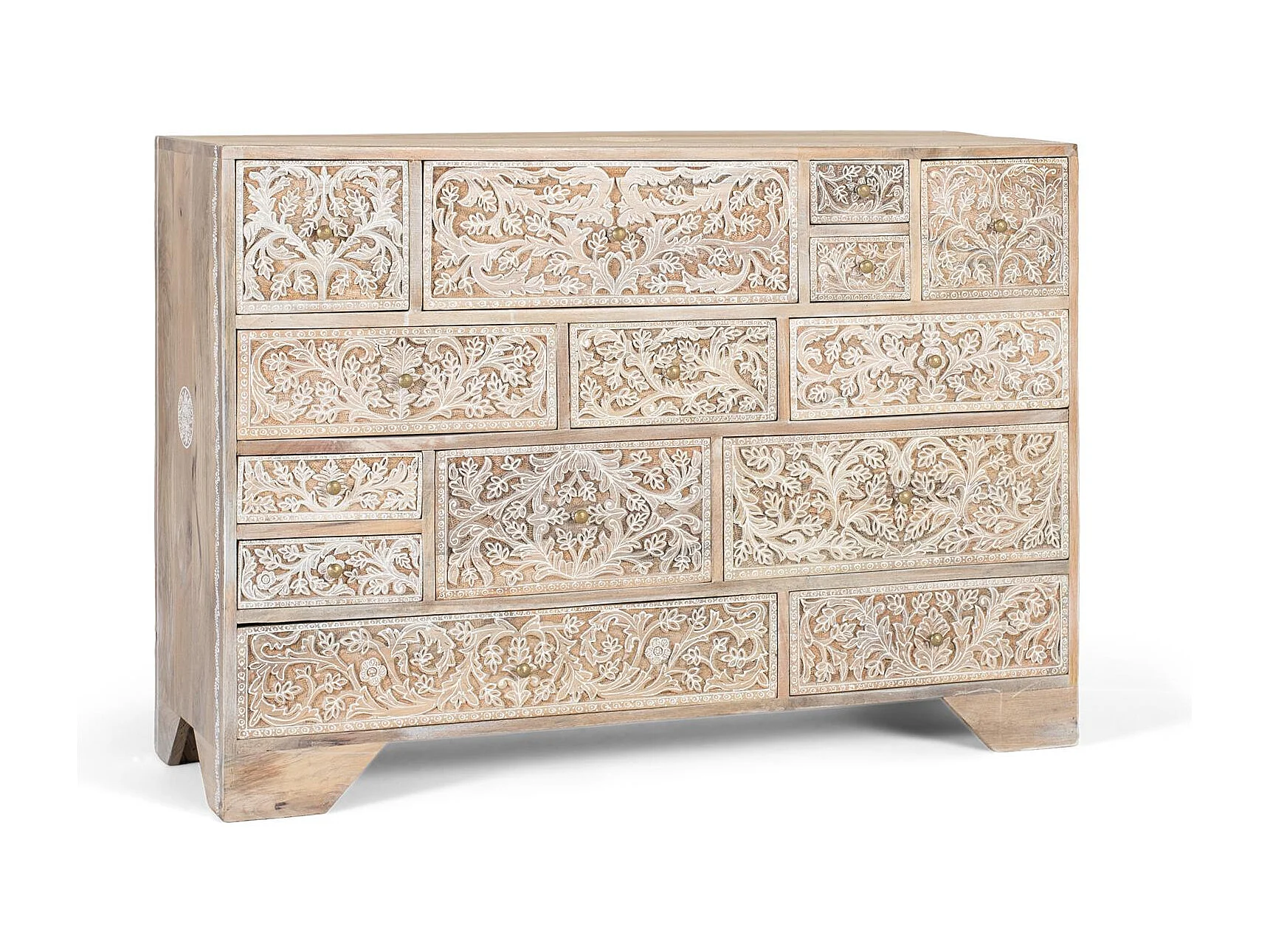 Cassettiera in legno di mango con 14 cassetti intagliati a mano