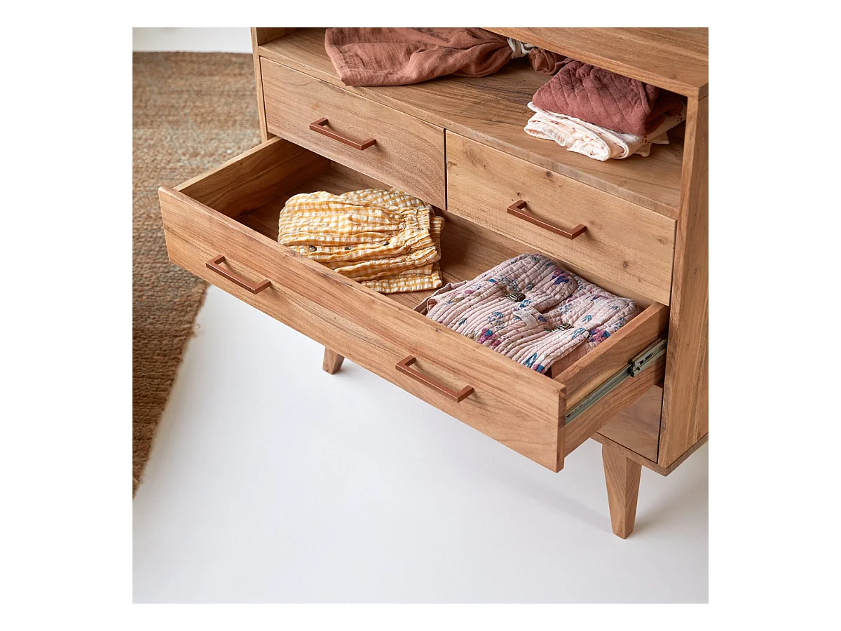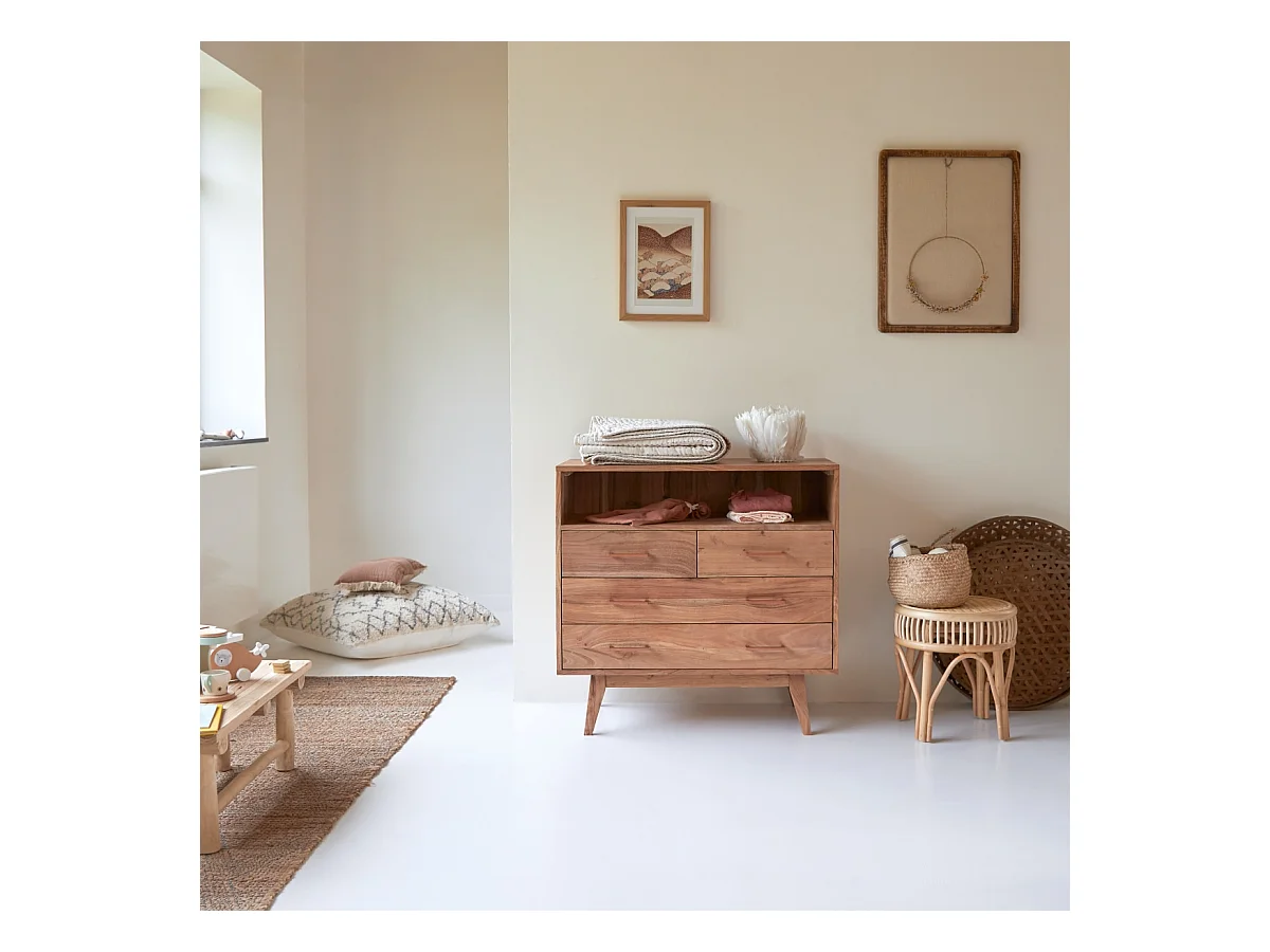 Cassettiera per bambini in legno di acacia 4 cassetti Oslo
