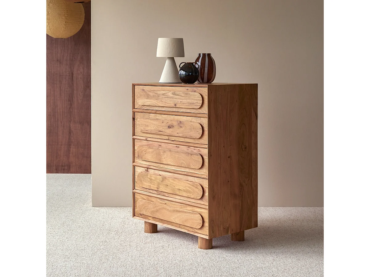 Cassettiera per bambini in legno di acacia 5 cassetti Pavel