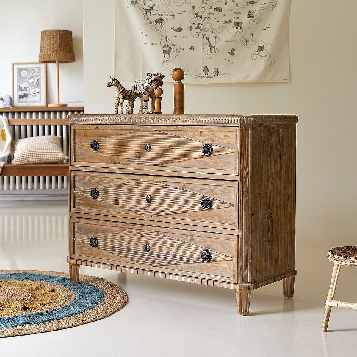 Cassettiera per bambini in pino massello riciclato 3 cassetti Emily