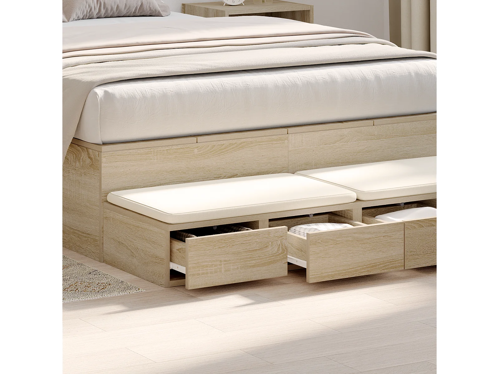 Letto con contenitori e cassetti