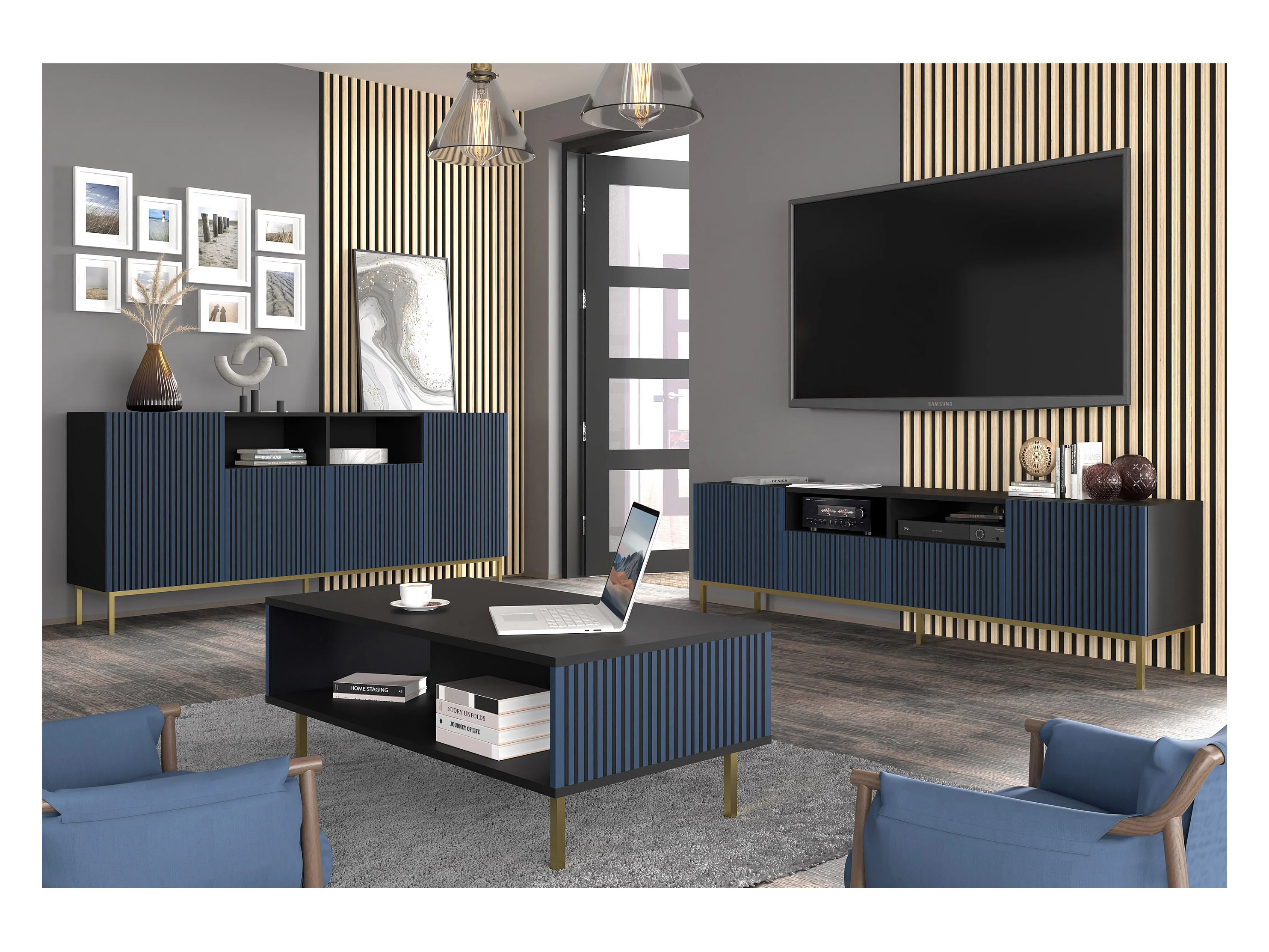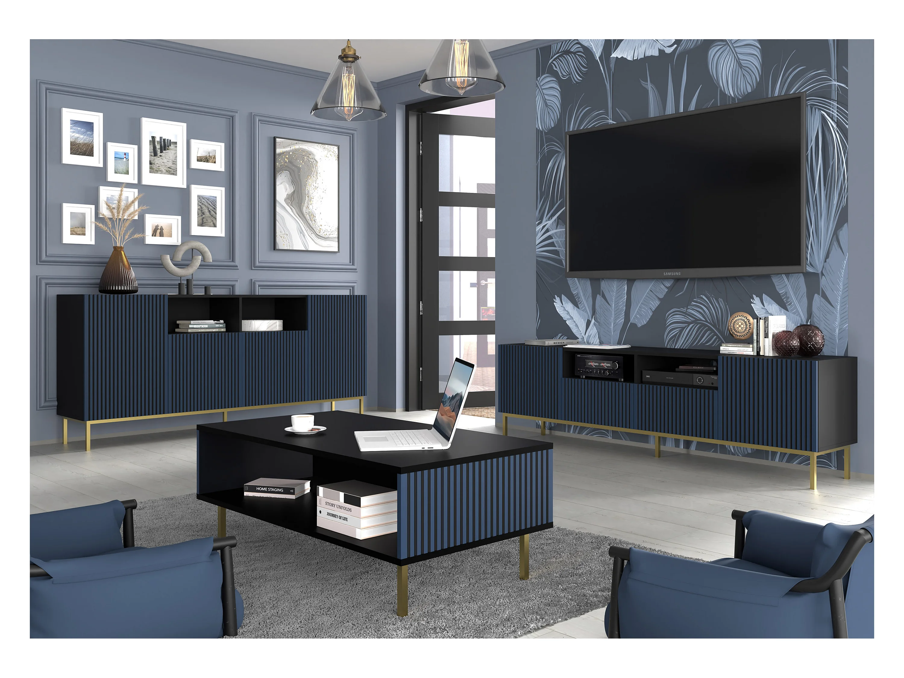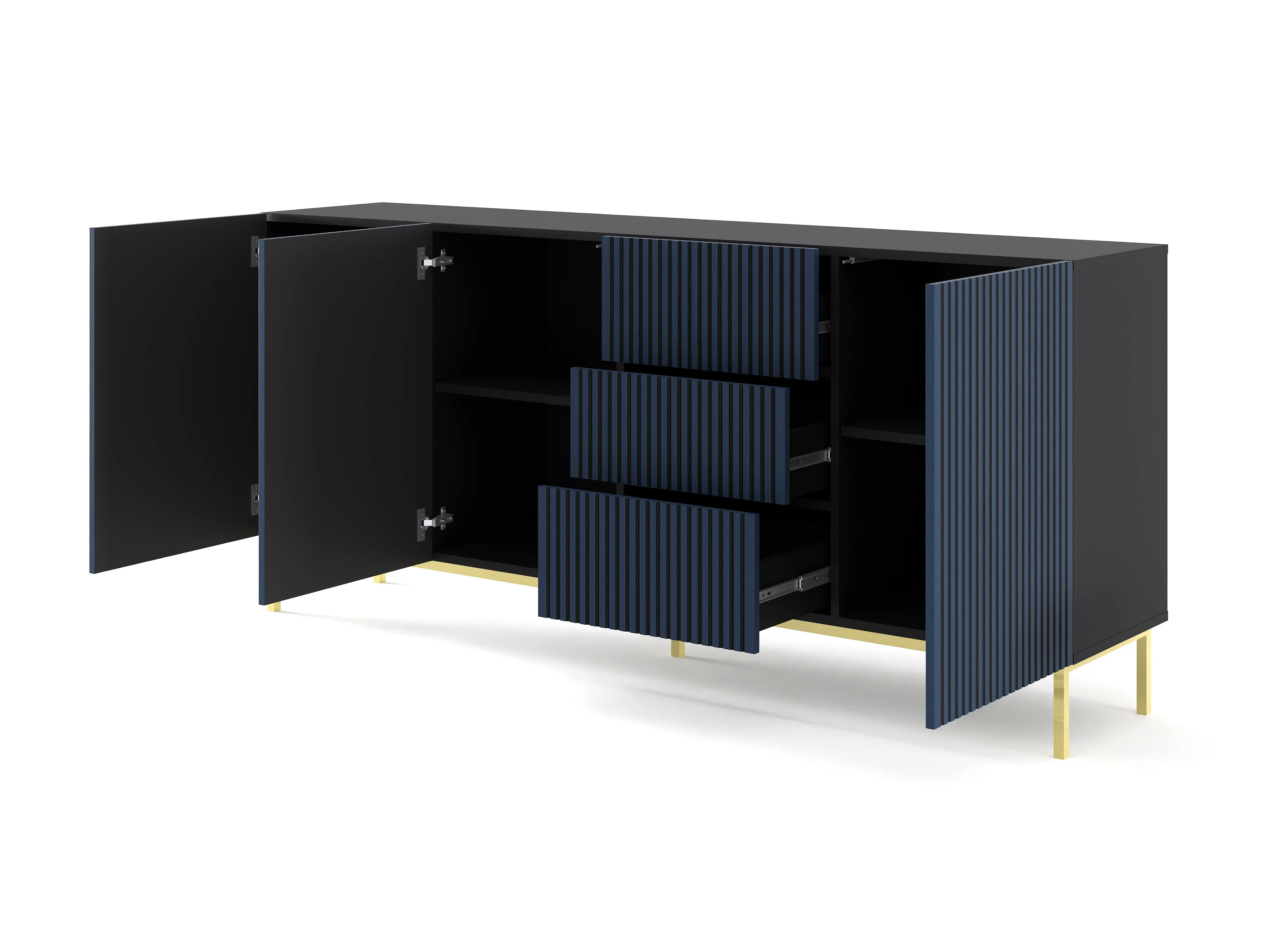 Cassettiera RavennaF 200x42x87 Nero & Blu reale & Oro
