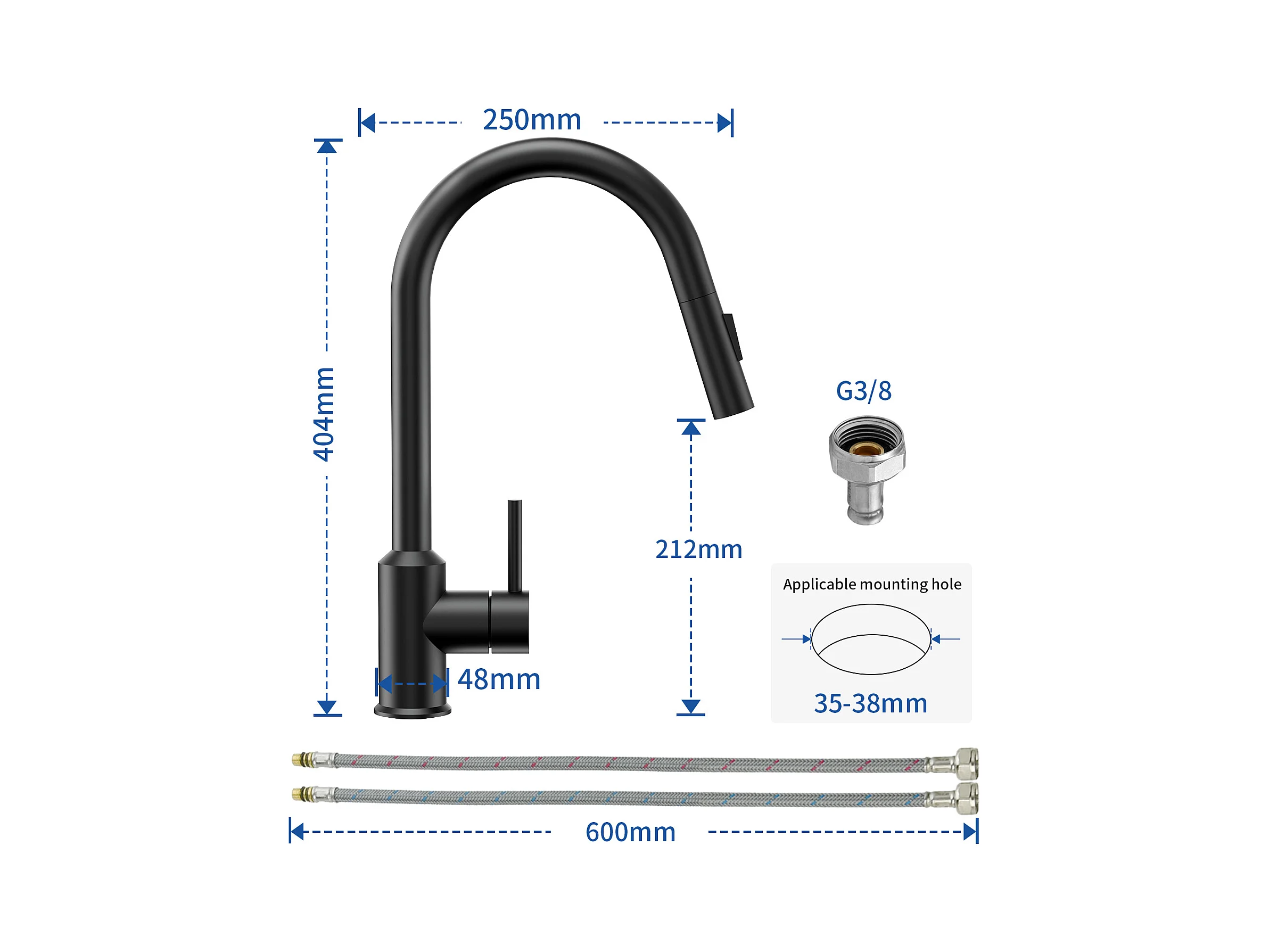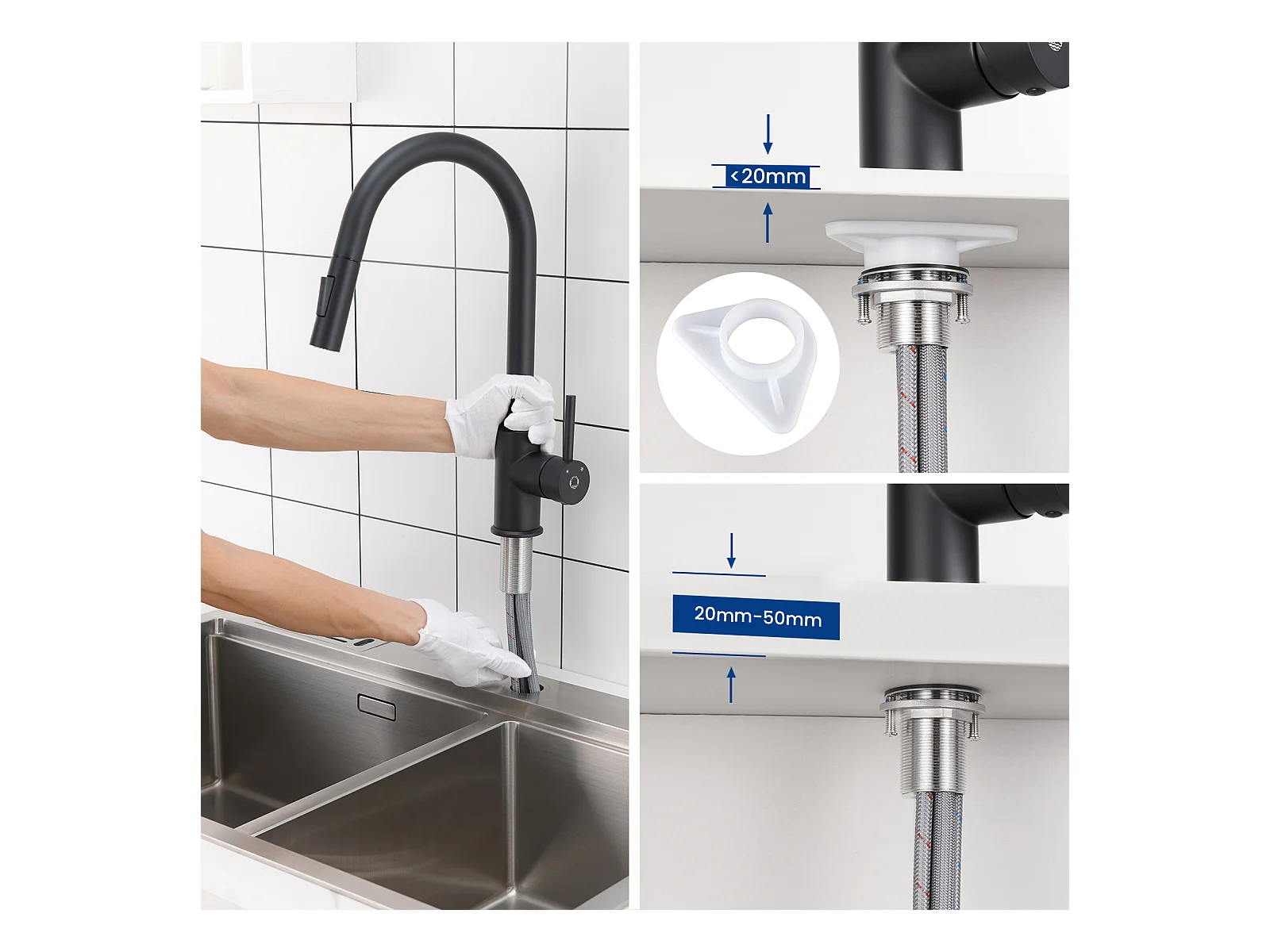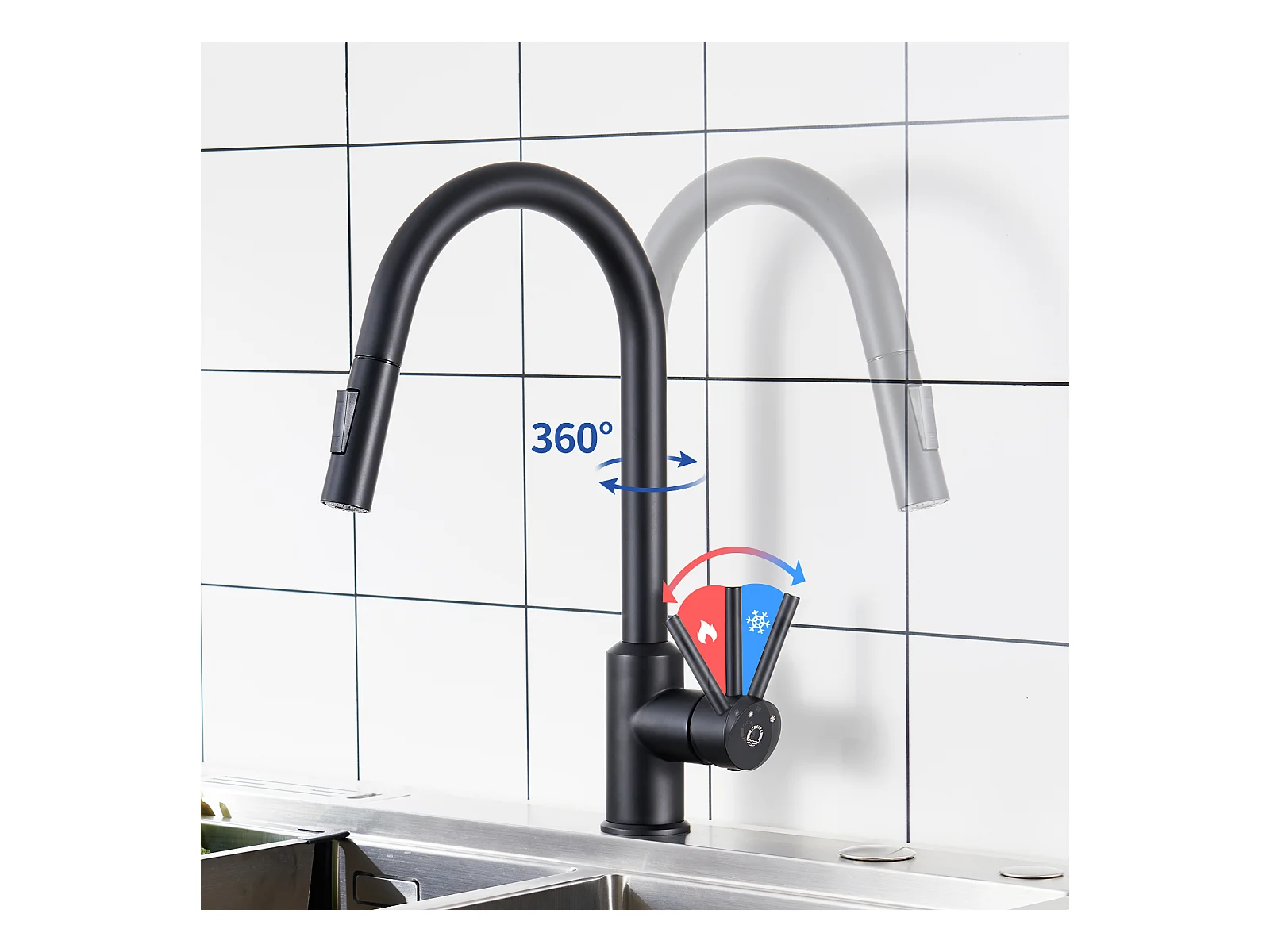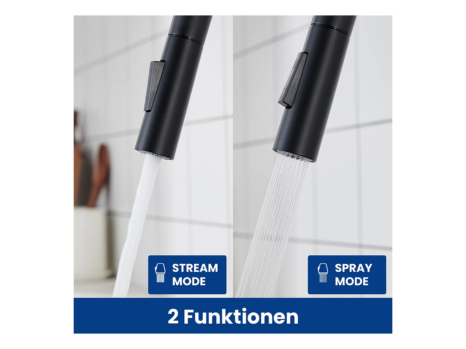 Cecipa max Miscelatore da Cucina con doccetta Estraibile - Nero - Miscelatore per lavello da cucina in Acciaio Inox con 2 modalità di uscita dell'acqua, Modello UE