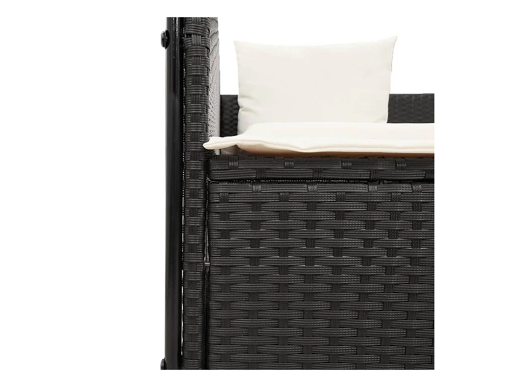 Sedia a sdraio nera con cuscino, 63 x 200 x 81 cm, in rattan sintetico