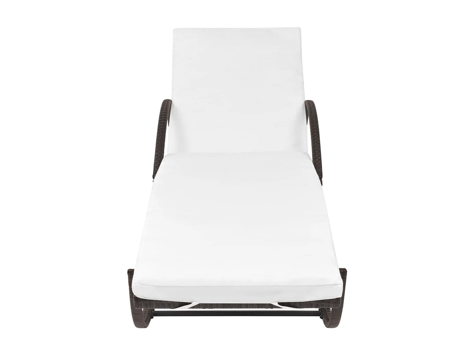 Chaise longue con cuscini marroni 114x205x73 cm in resina intrecciata