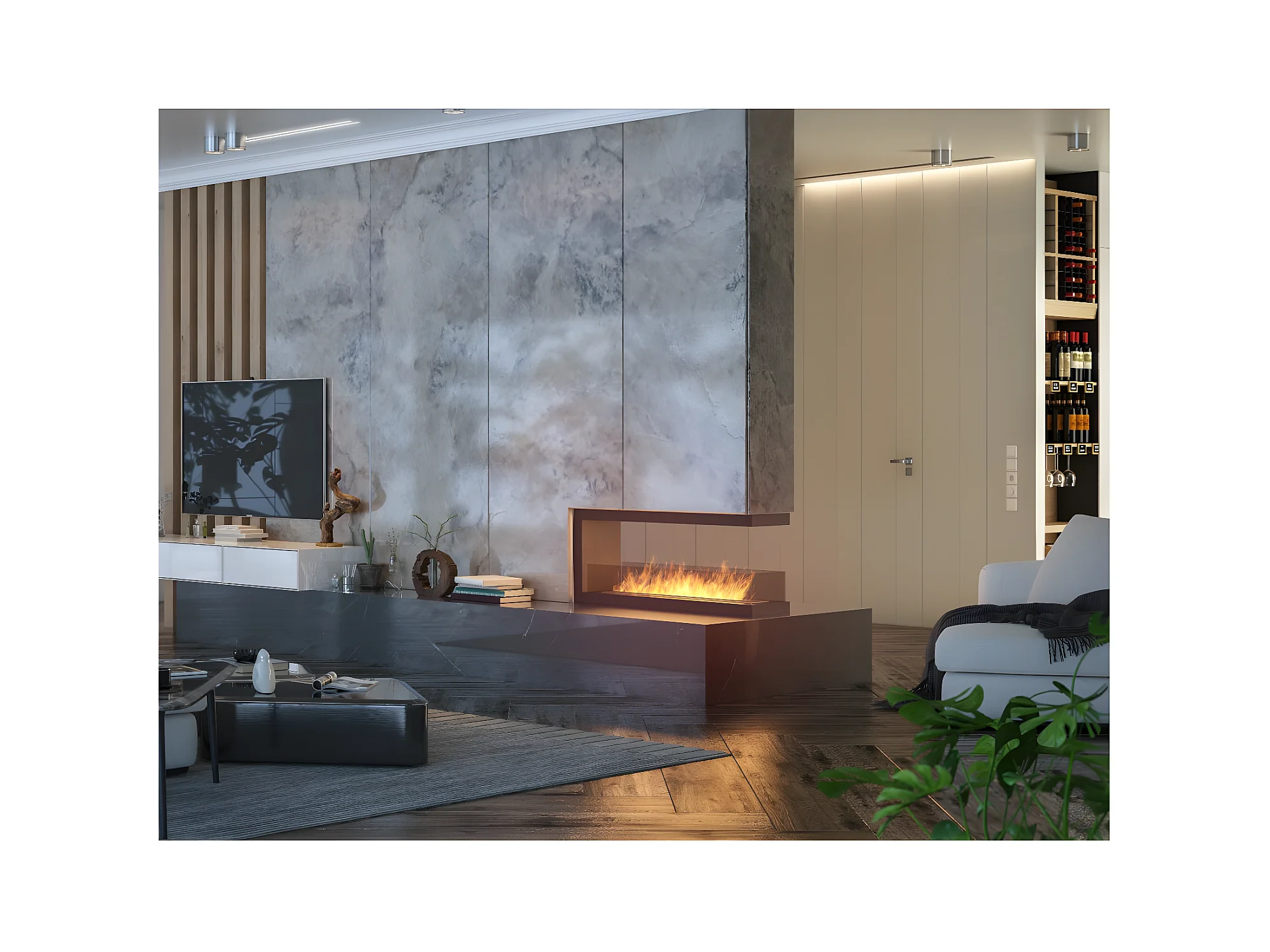 Caminetto a Bioetanolo Da Incasso di Design C1200 V.3 con Vetro Aperto su 3 Lati Bruciatore da 3 Litri