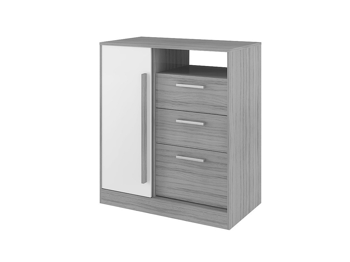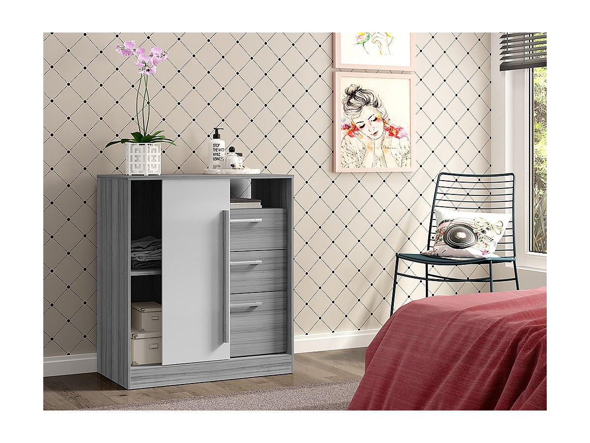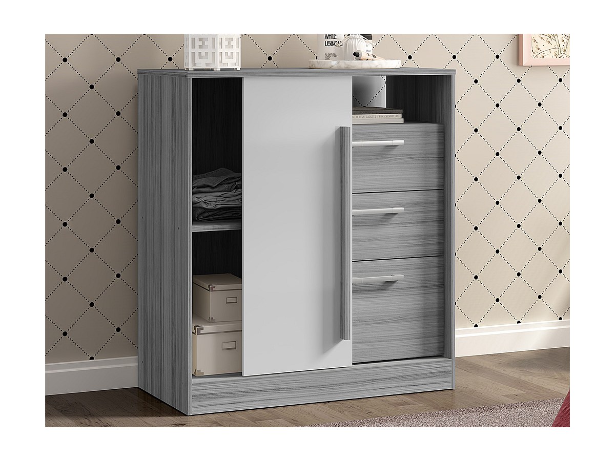 Comò 1 vano, 1 anta, 3 cassetti - Colore Grigio e Bianco - DEVY