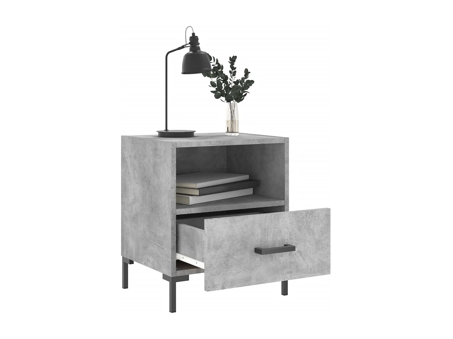 Comodino grigio cemento 40x35x50 cm in legno ingegnerizzato