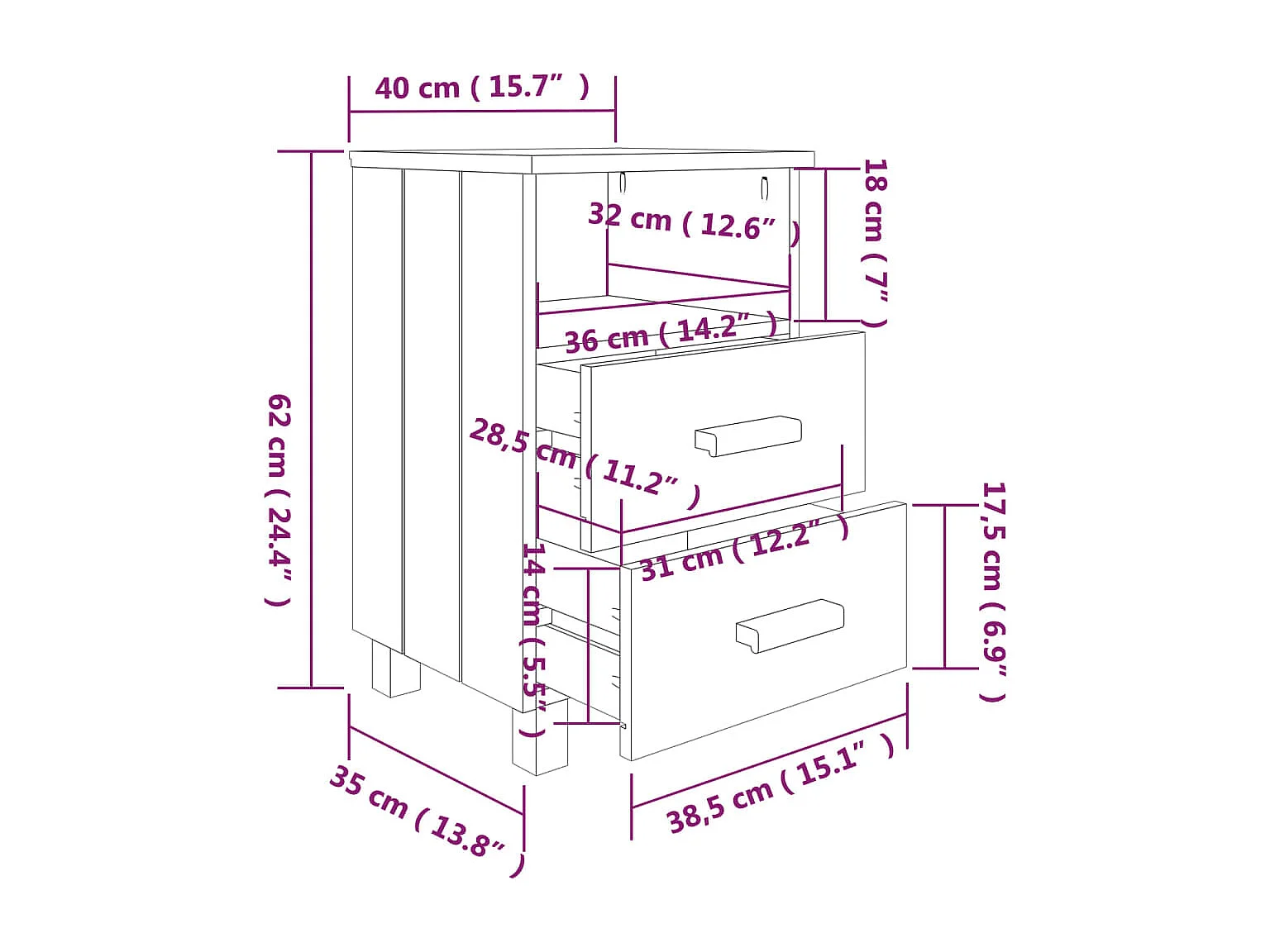Comodini 2 pz Bianco 40x35x62 cm Legno massello