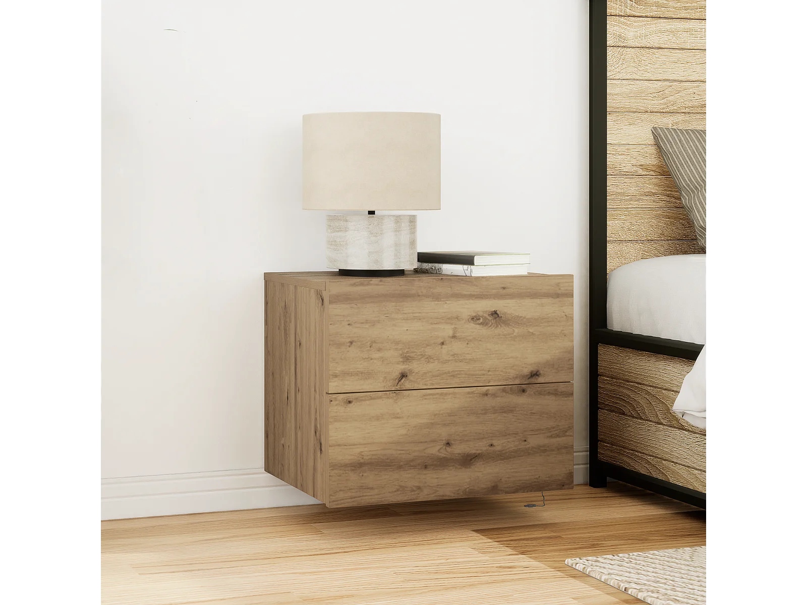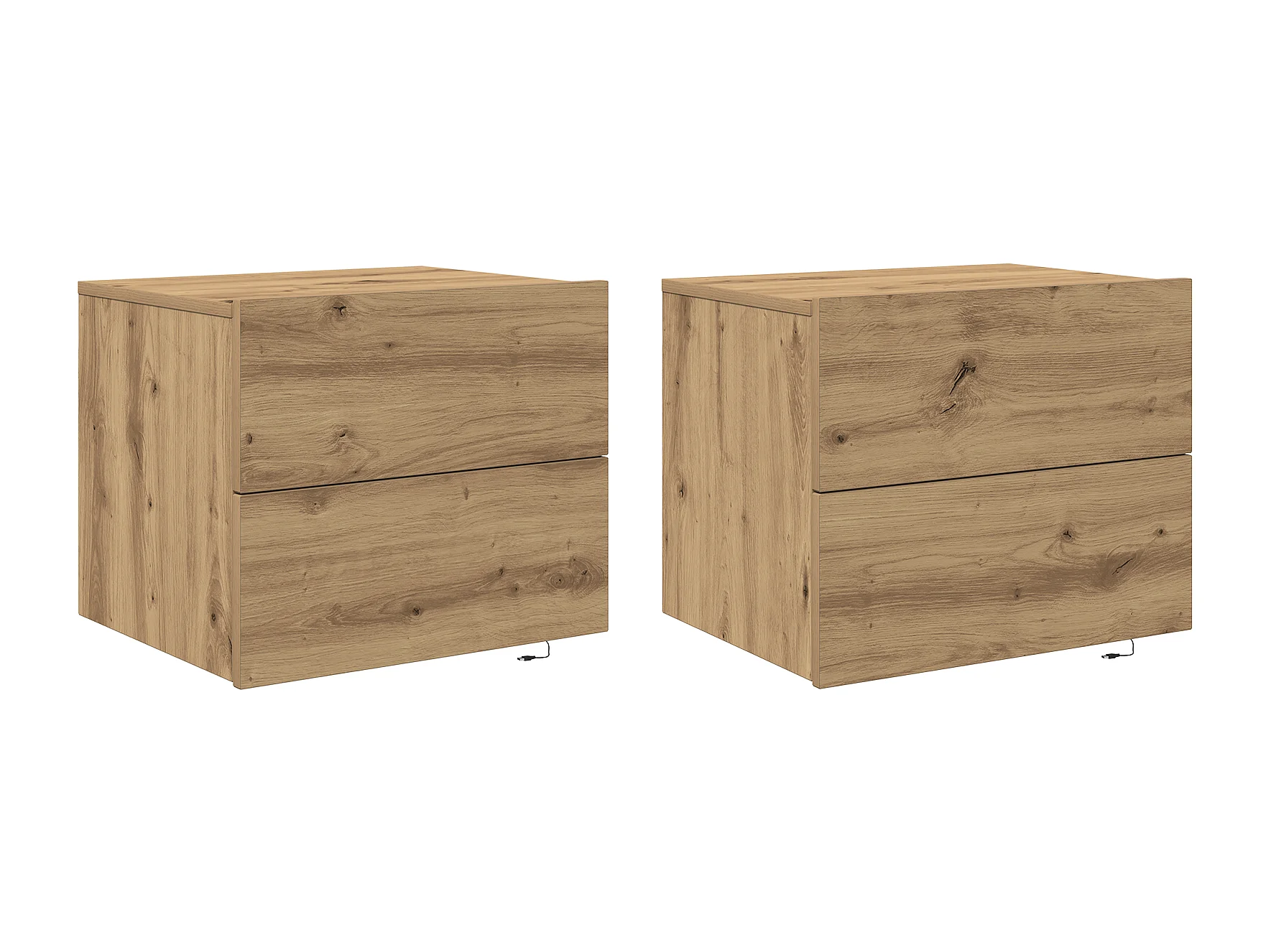 Comodini con luci da parete a LED 2 pezzi in rovere artigianale