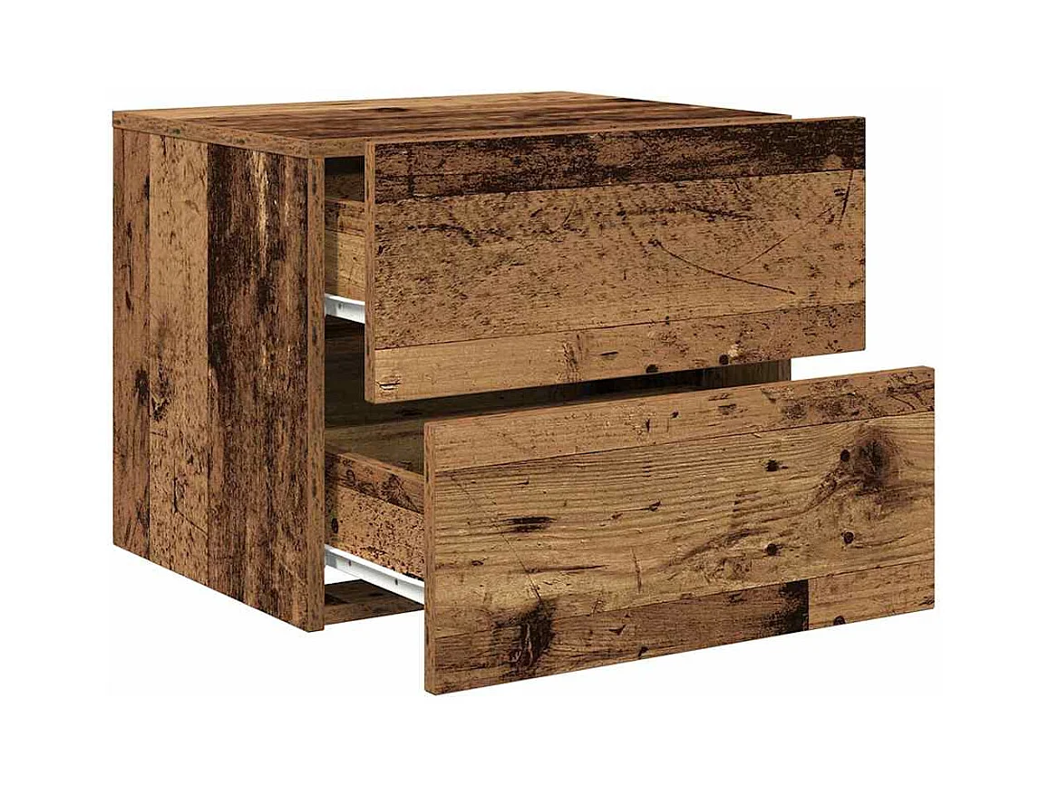 Comodini da parete in legno antico a 2 pezzi con luci a LED
