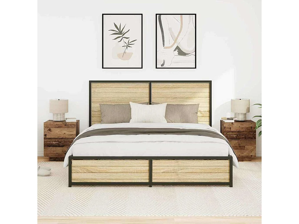 Comodino a 2 pezzi e luci a LED, rovere Sonoma
