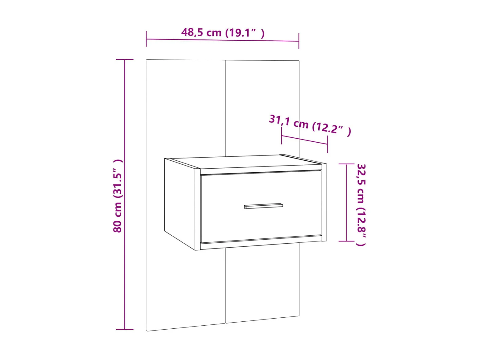 Mobile letto 2 pezzi, legno antico, 48,5 x 32,5 x 80 cm