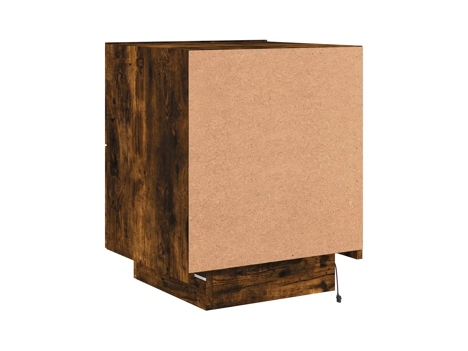 Comodino in legno ingegnerizzato di rovere affumicato e luci a LED