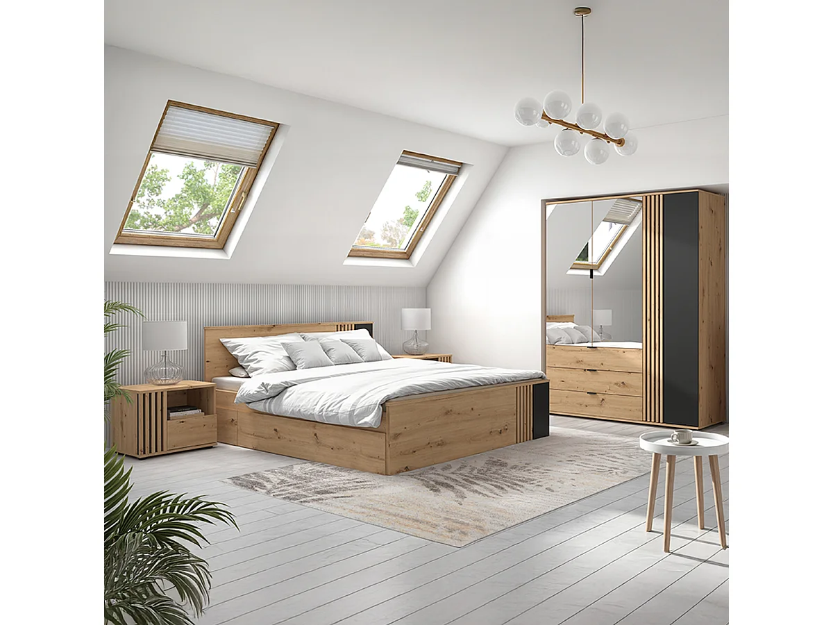 Comodino con 2 cassetti, decorazione rovere, altezza 50 cm - LENNY