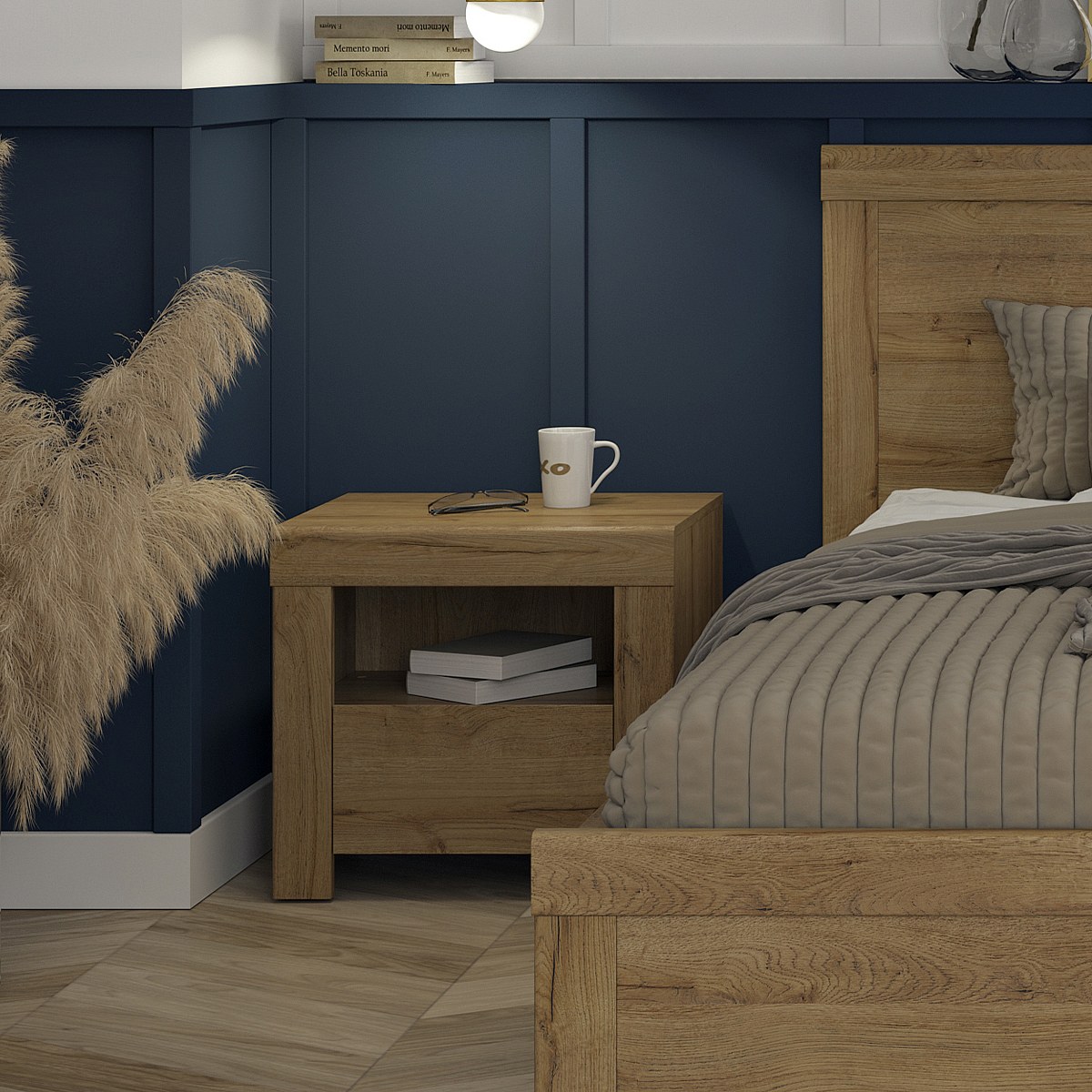 Comodino 1 cassetto Connie cashmere e marrone 55cm