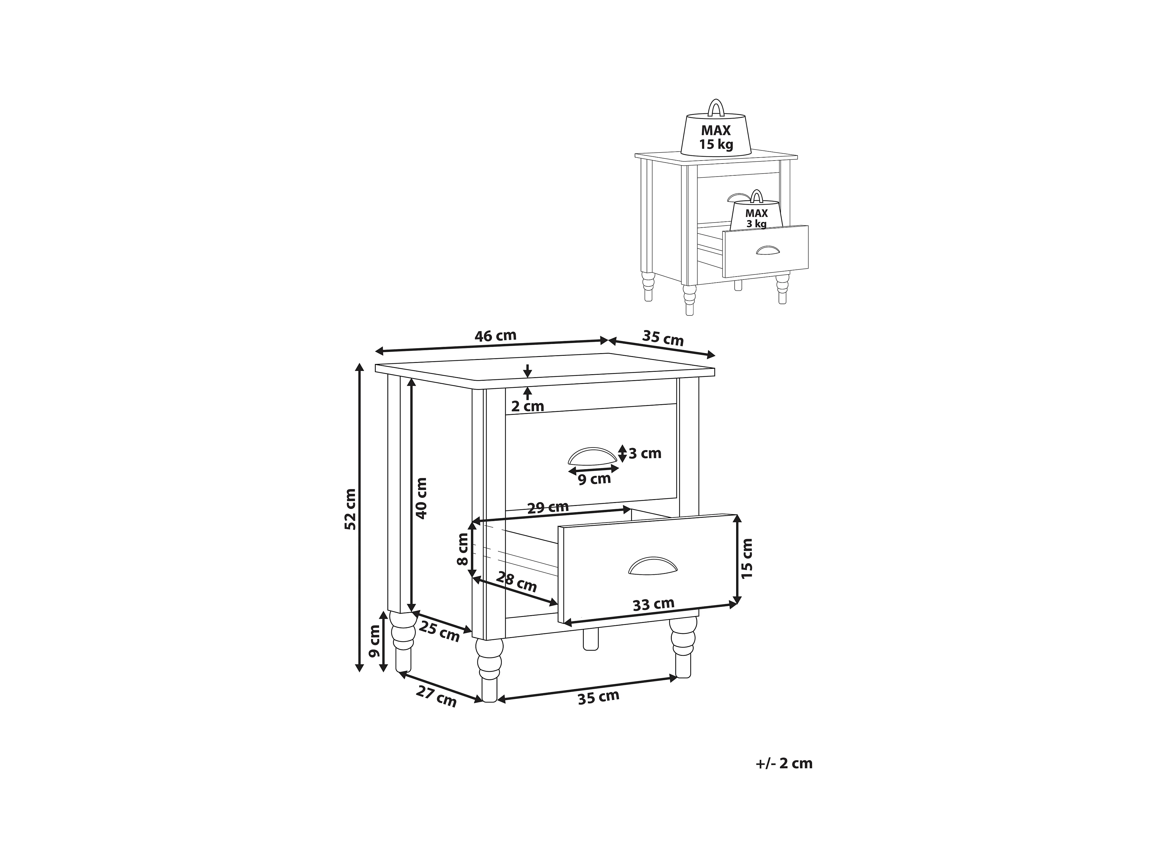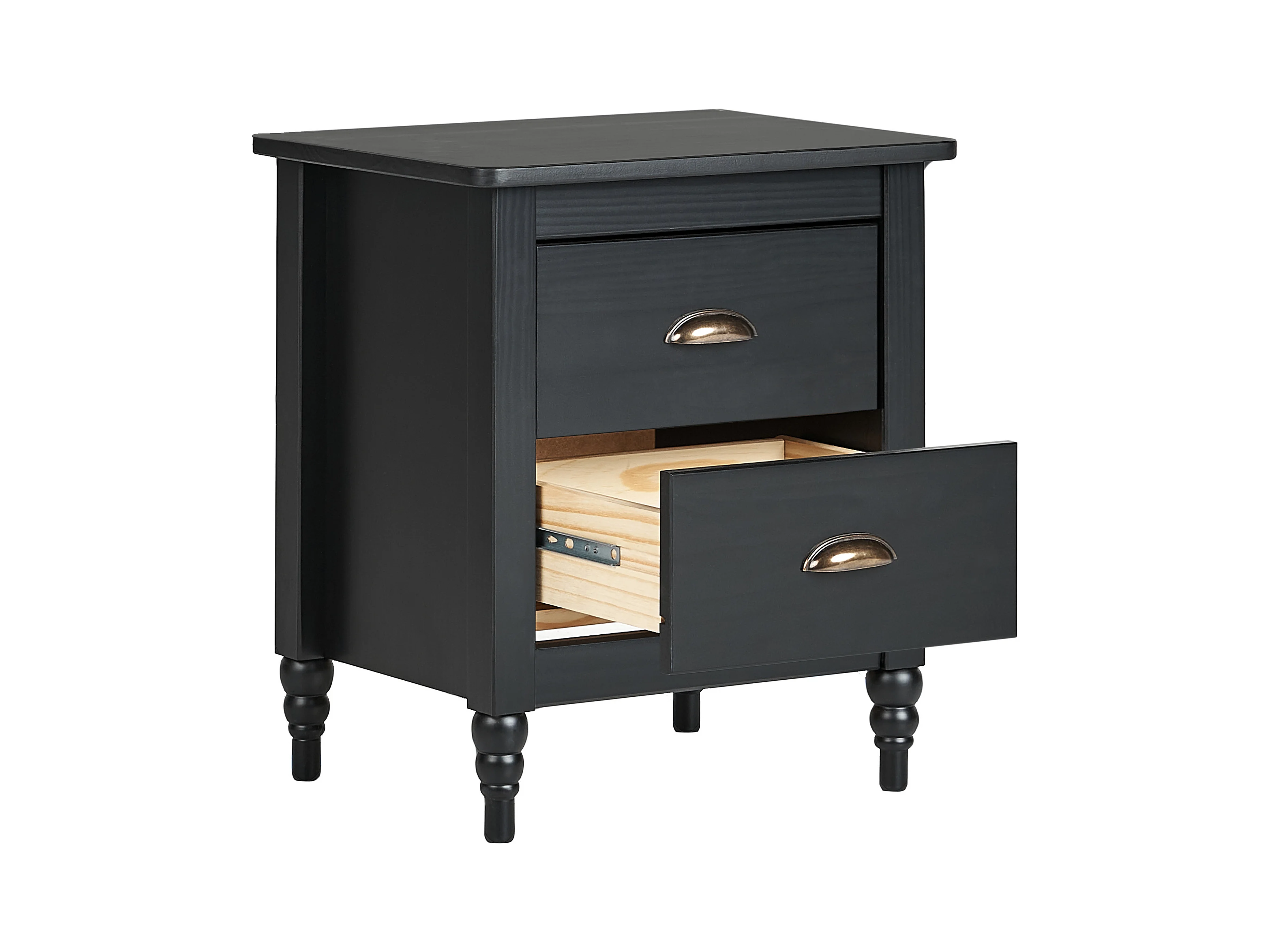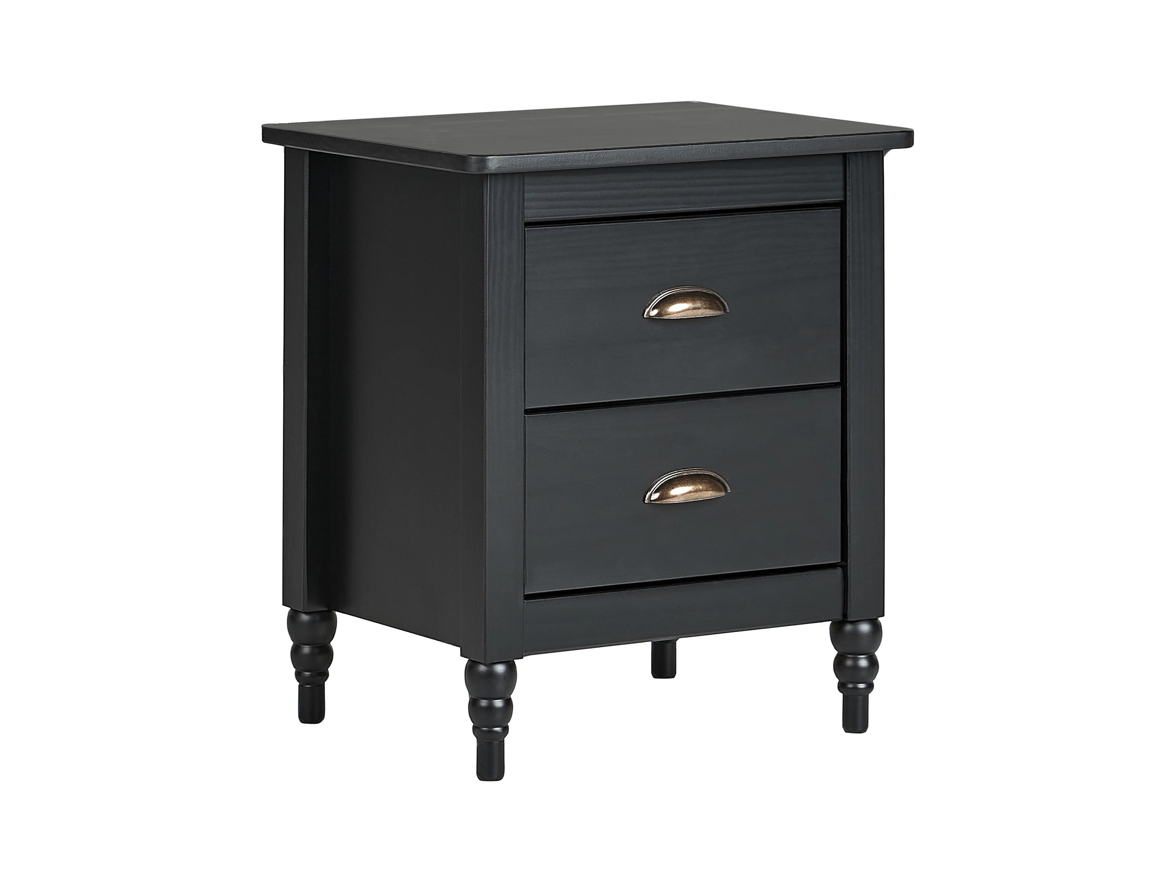 Comodino 2 cassetti SHILLINGTON Legno di pino Nero