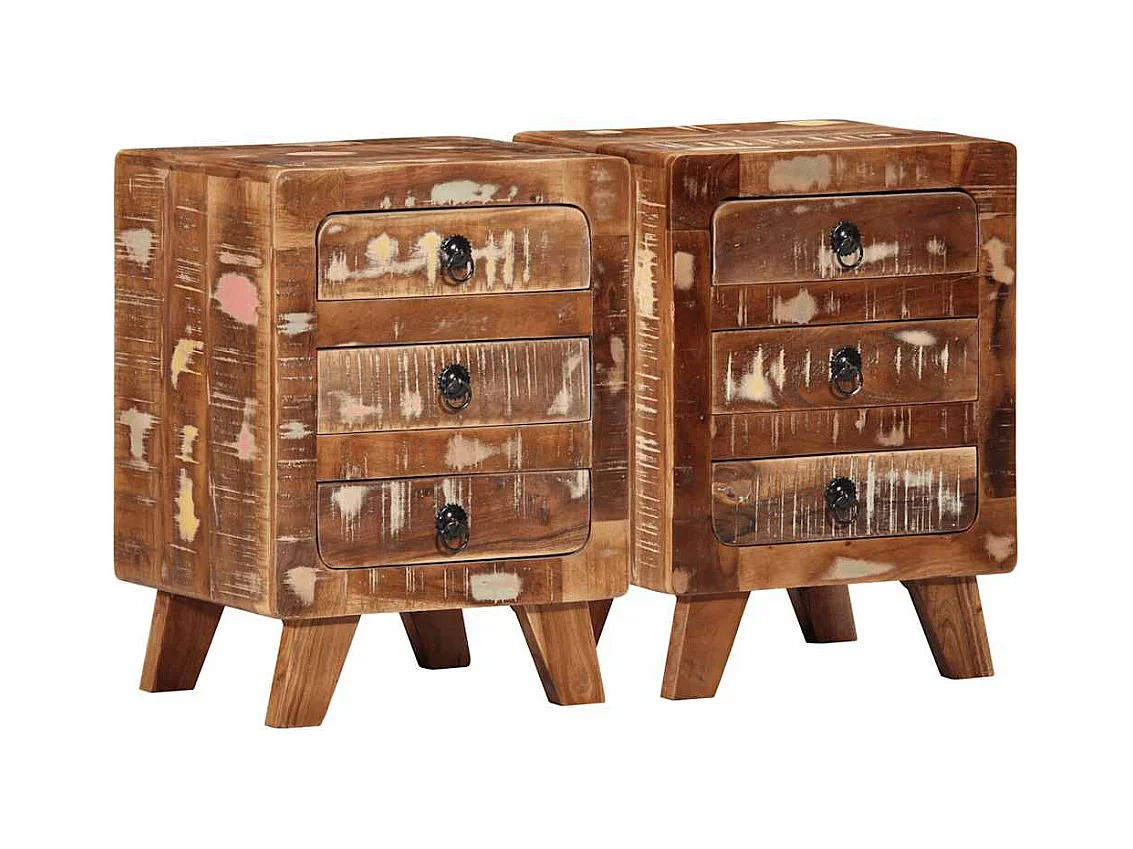 Comodino 2 pezzi 37x32x50 cm in legno massello di recupero