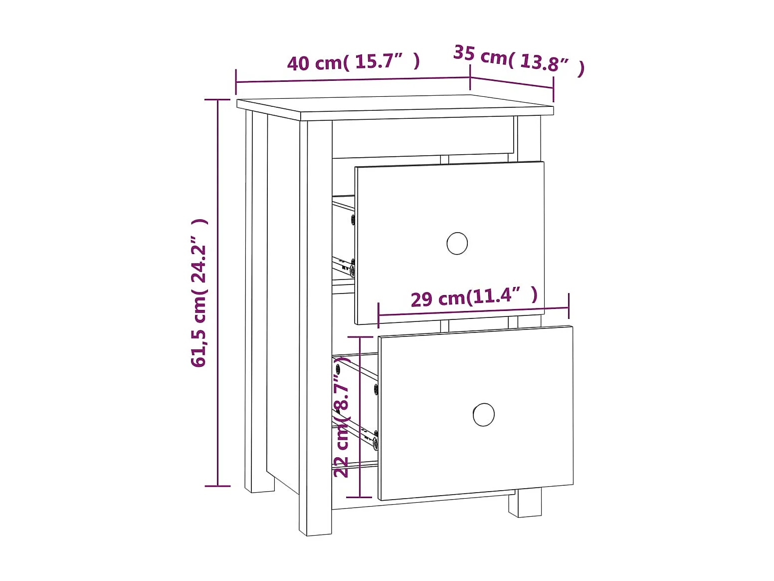 Comodino 40x35x61,5 cm in Legno Massello di Pino