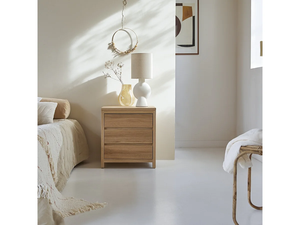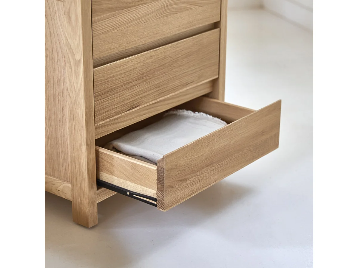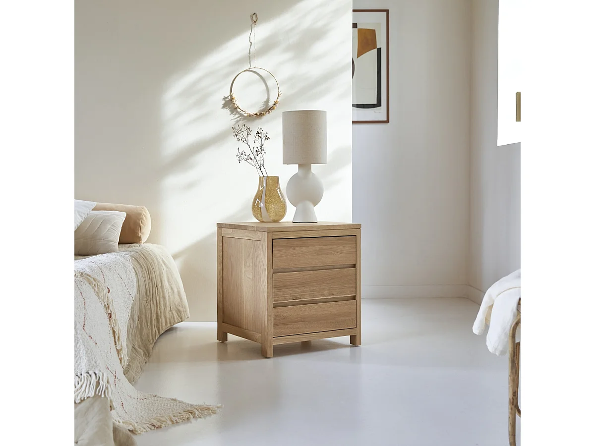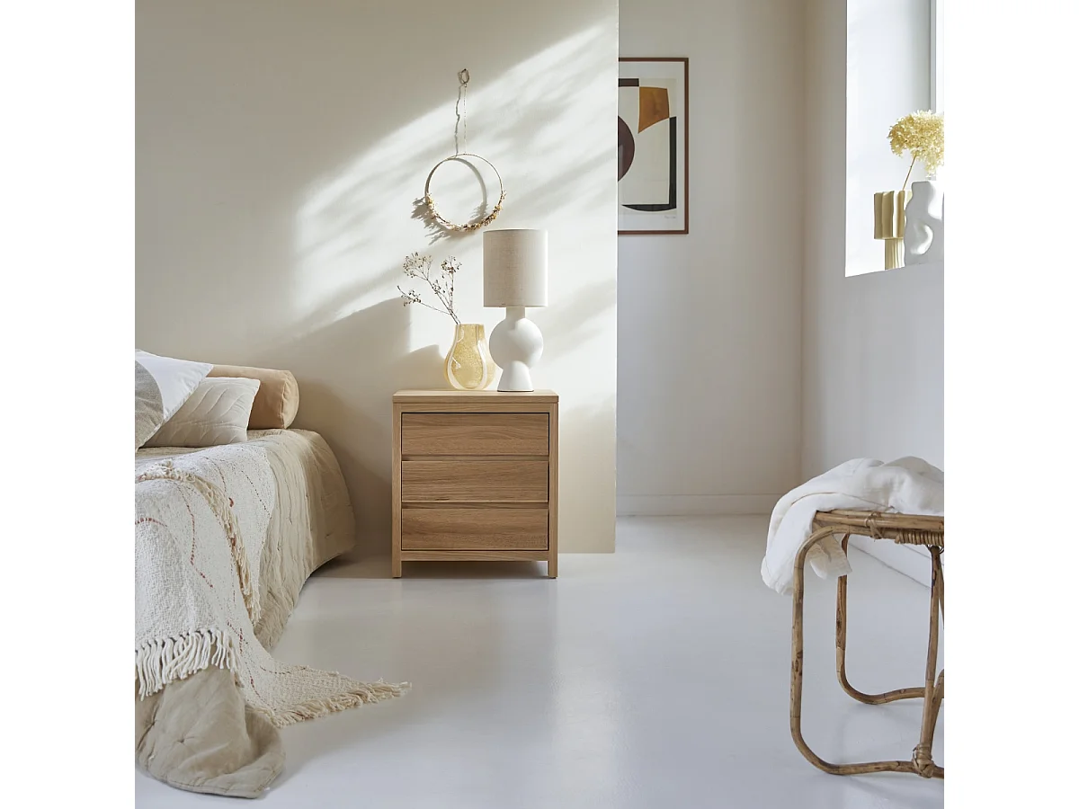 Comodino a 3 cassetti Eden in quercia massello 55 cm