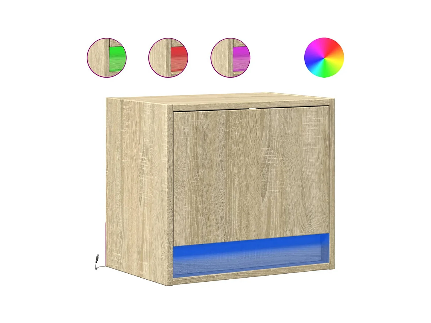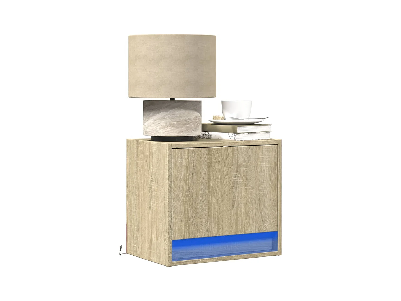 Comodino a Parete con luci LED Rovere Sonoma