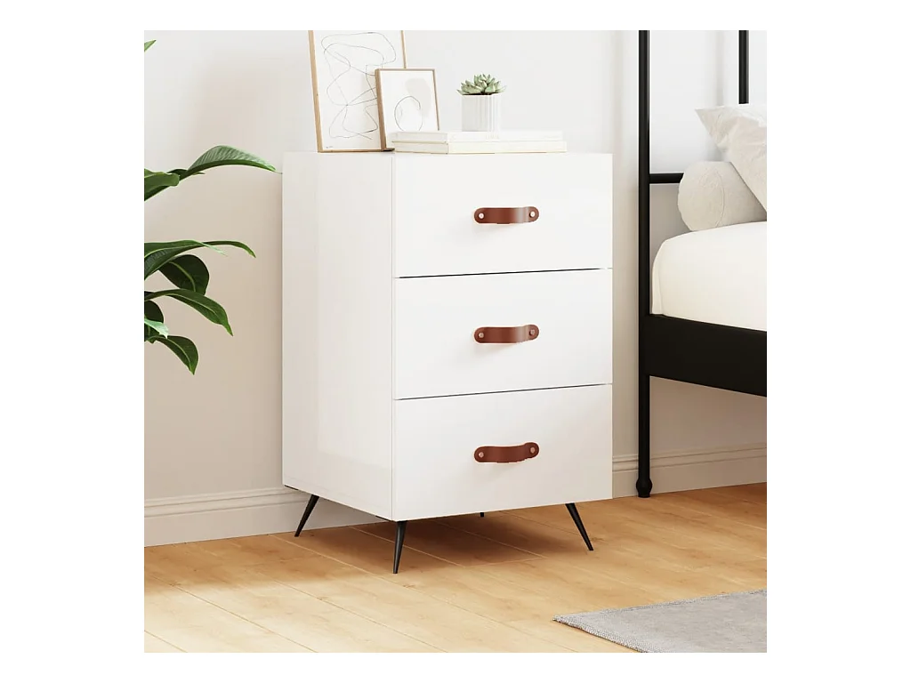 Comodino bianco lucido 40x40x66 cm in multistrato