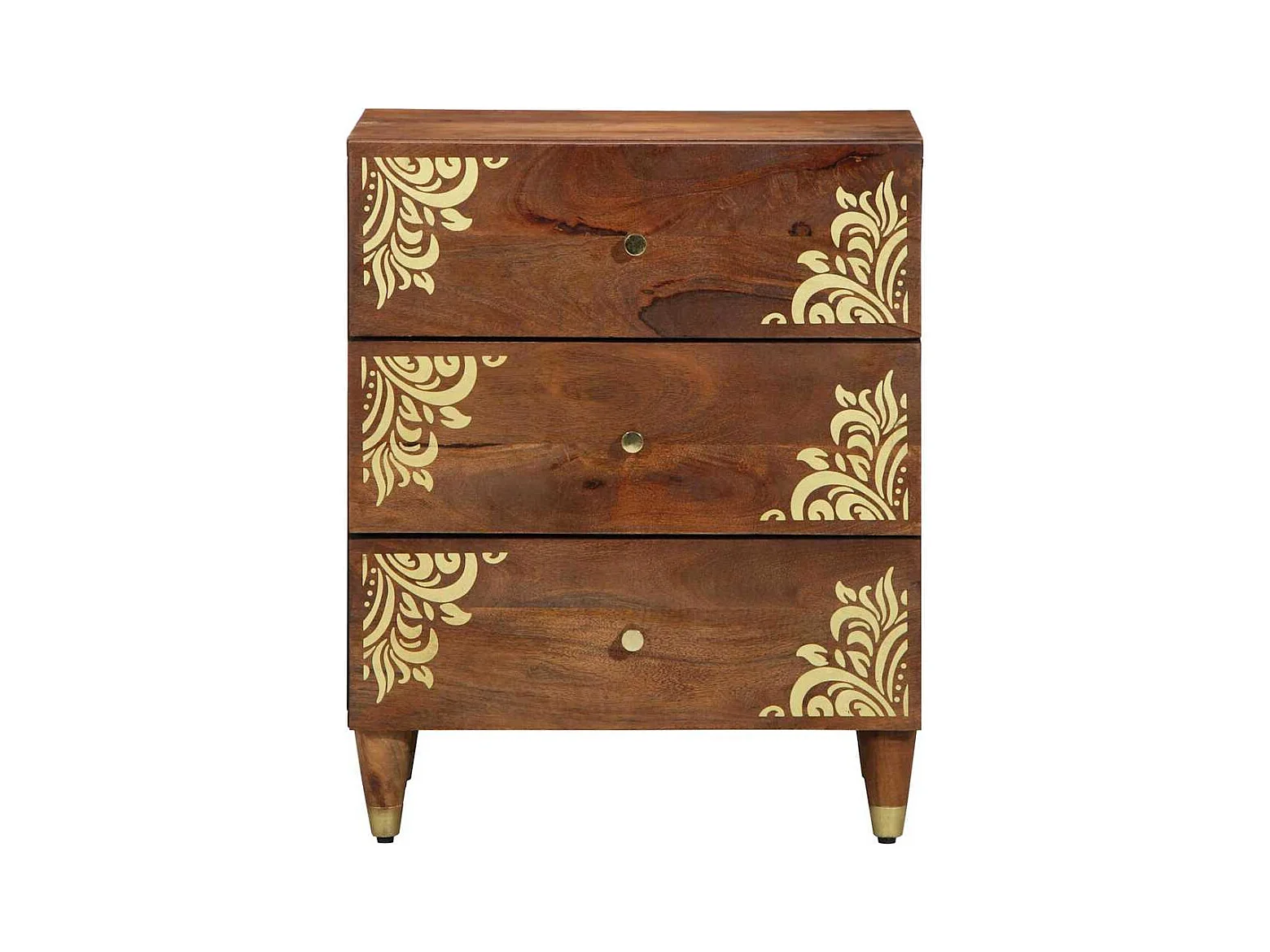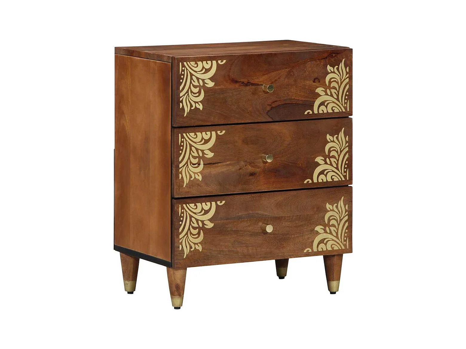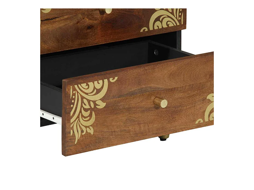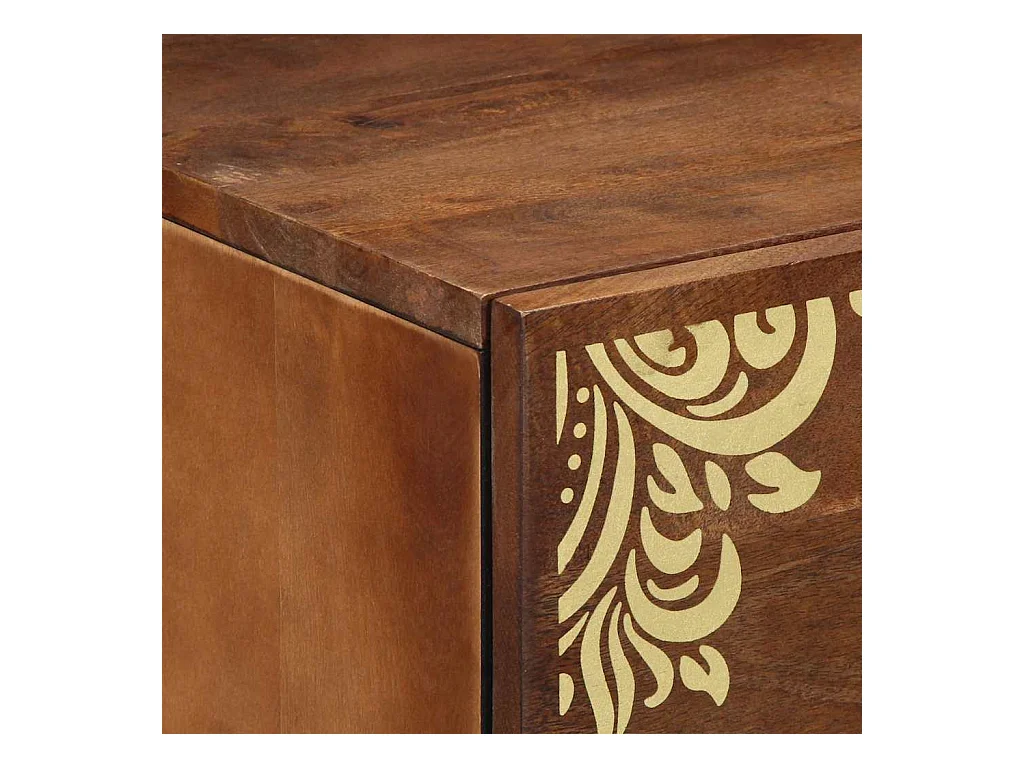 Comodino color miele con motivo dorato in legno massello di mango