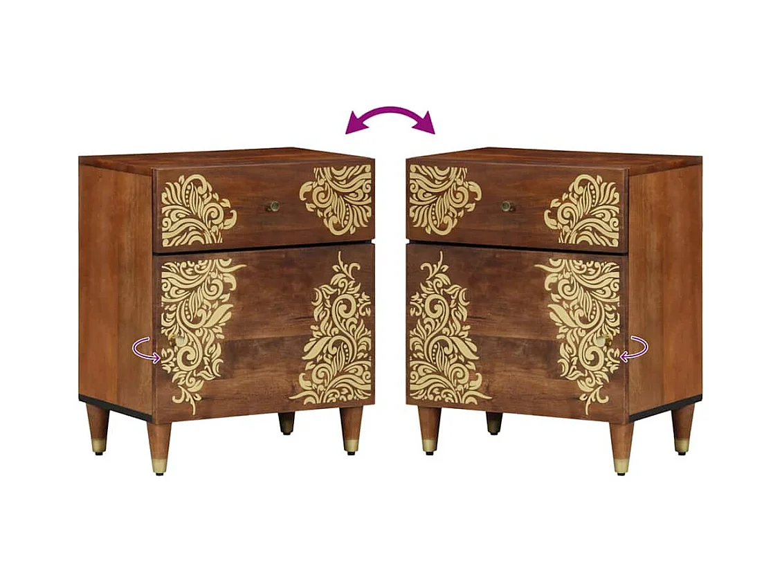 Comodino - 50x33x60 cm, realizzato in legno massello di mango