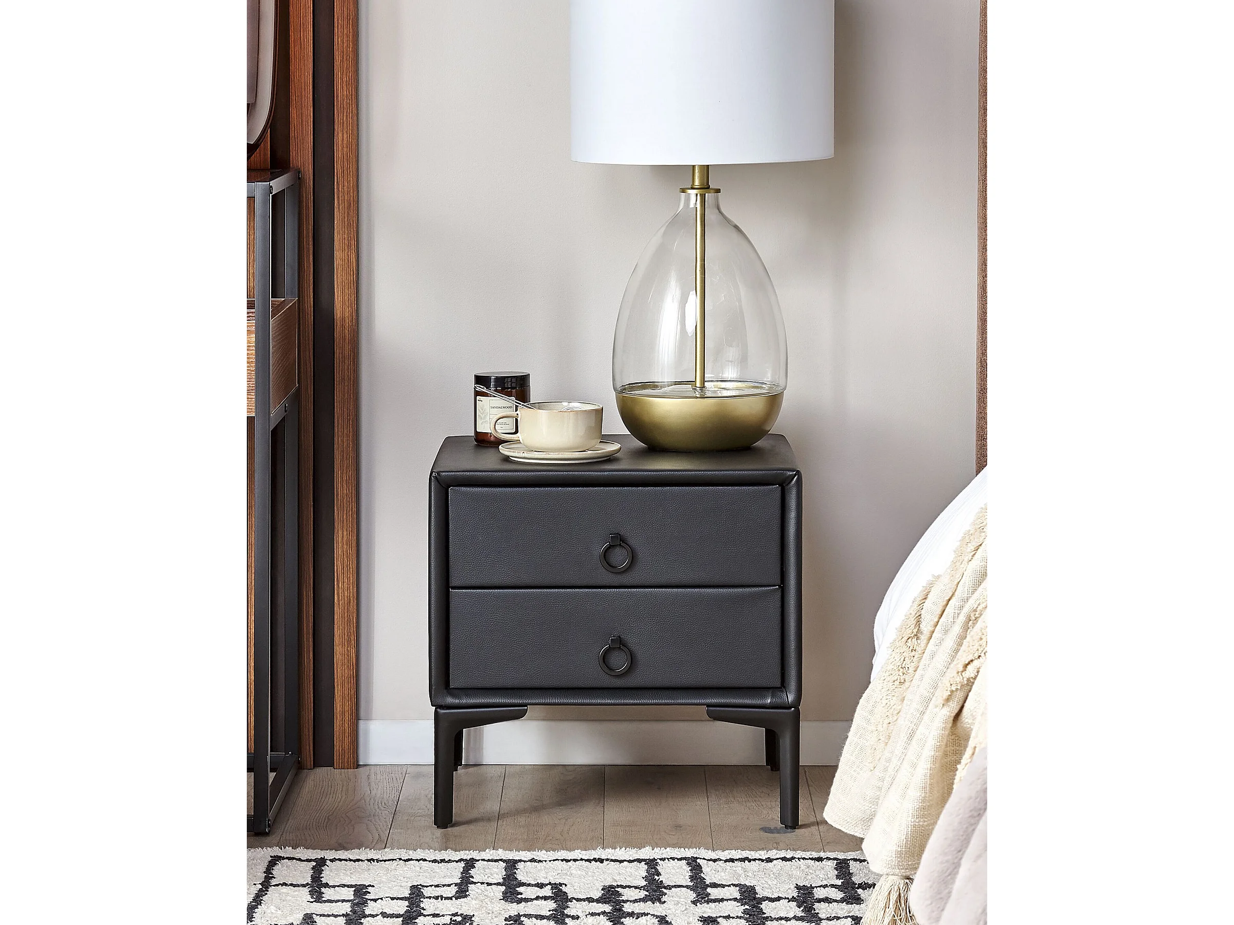 Comodino 2 cassetti SEZANNE Pelle sintetica Nero