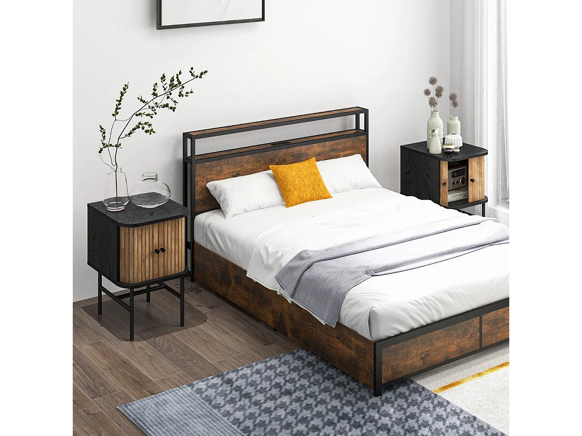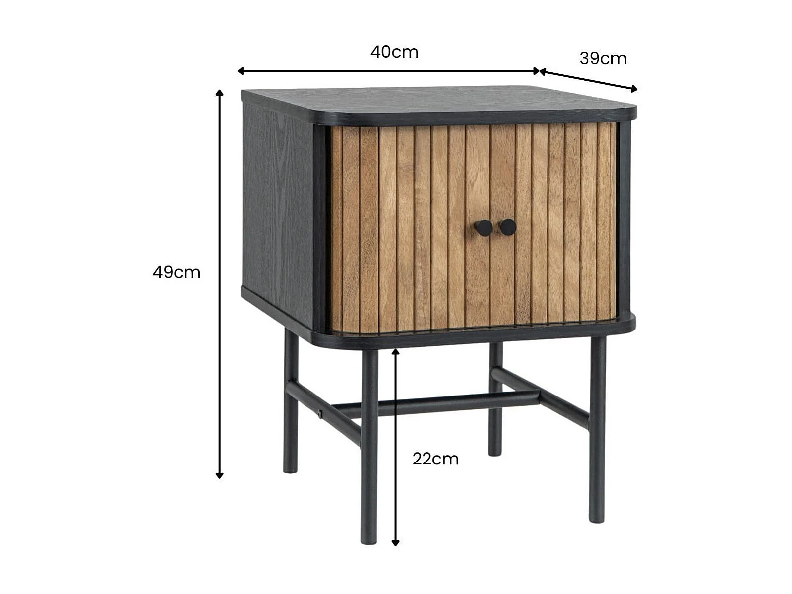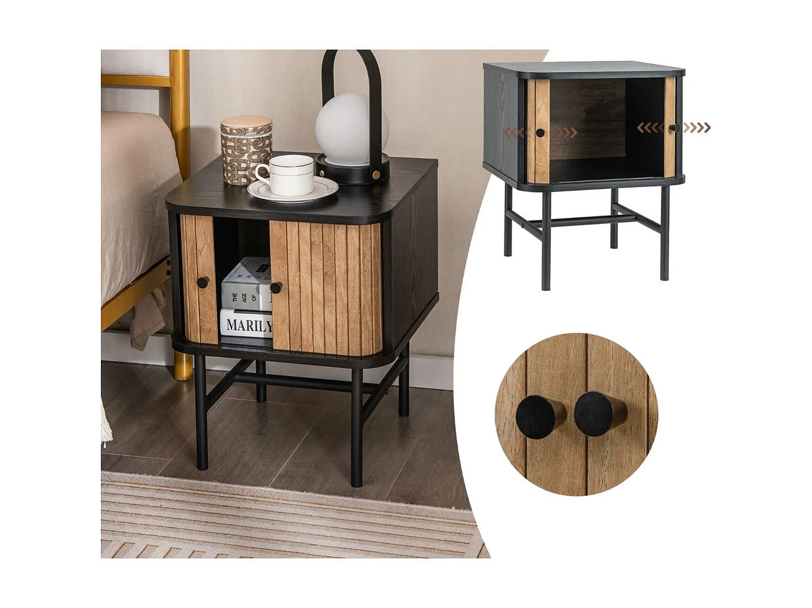 Comodino con ante scorrevoli scomparto chiuso gambe metalliche, Tavolino mid-centuryo laterale per soggiorno Nero