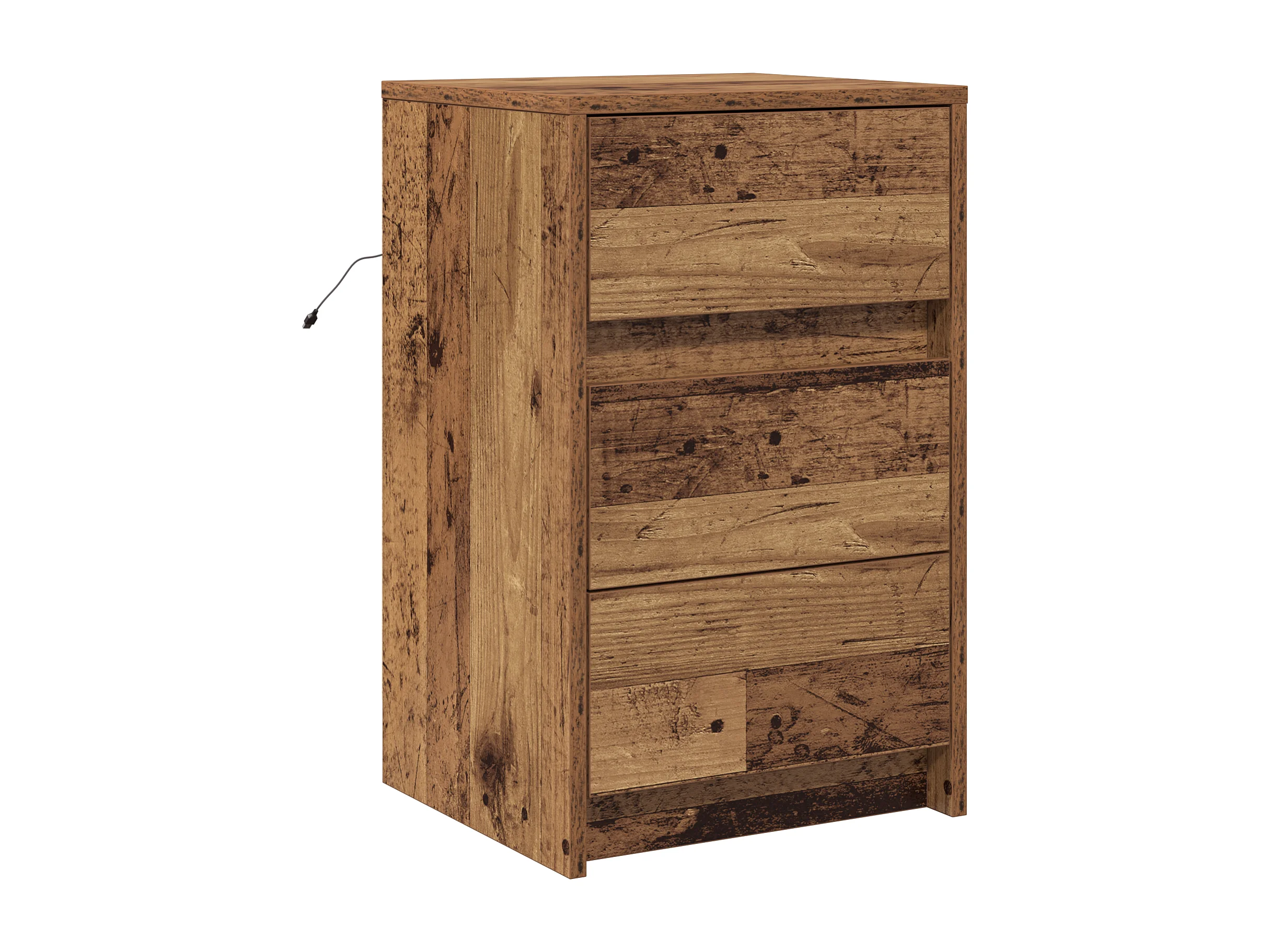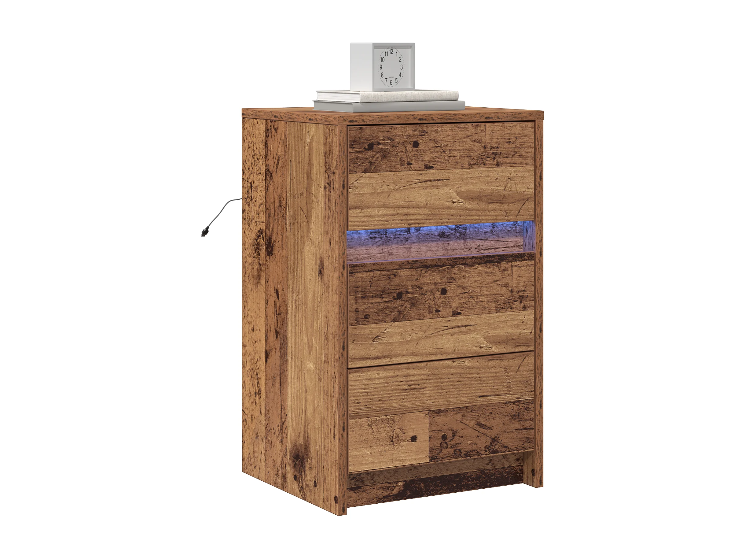 Comodino con luci a LED in legno anticato