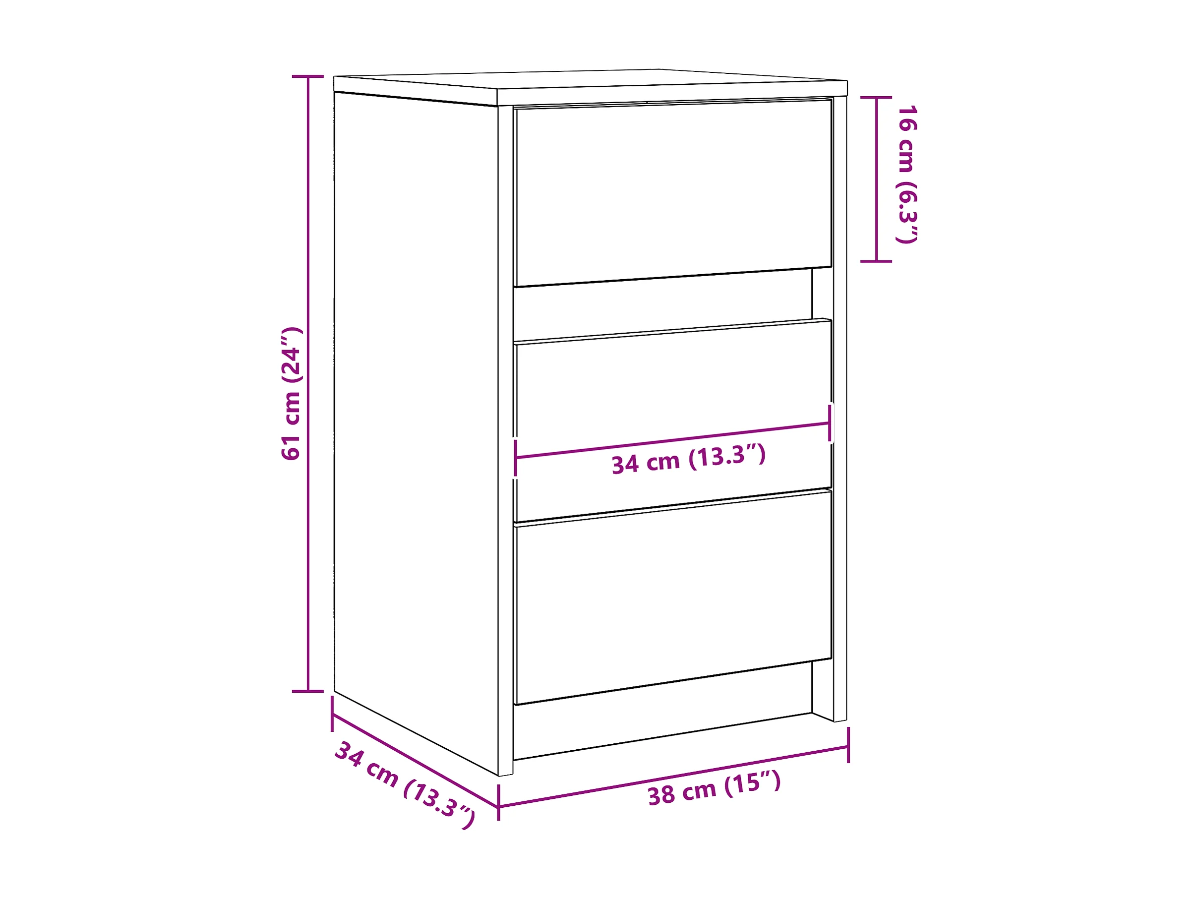Comodino 40x31x35,5 cm in legno massello di pino