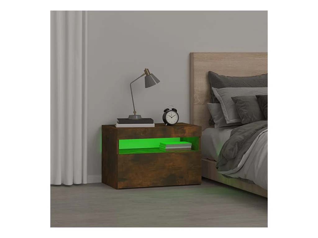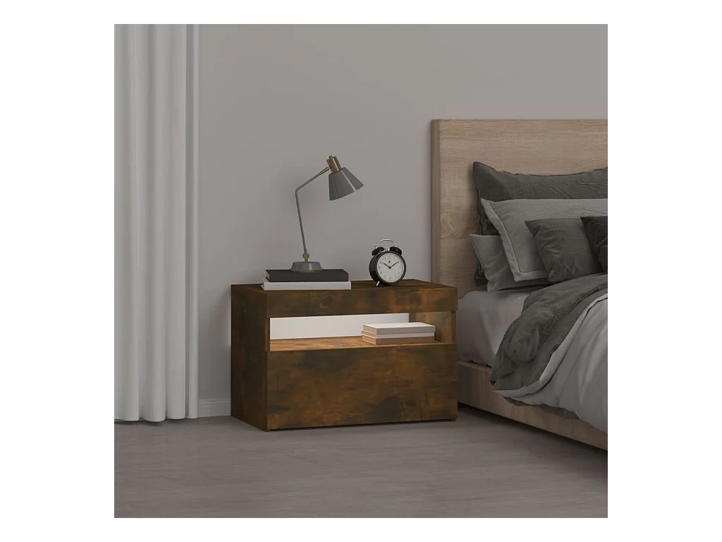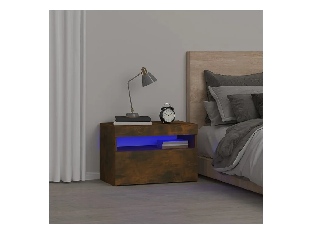 Comodino con luci LED Rovere affumicato 60x35x40 cm